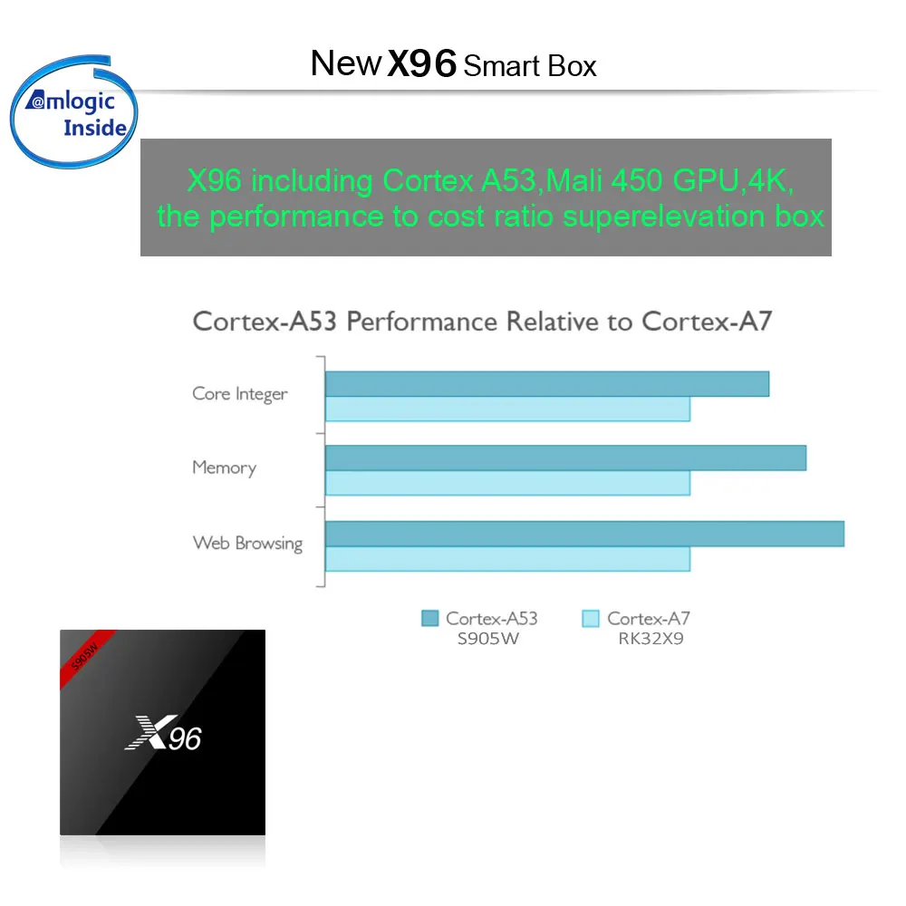 -Процессор в этом чипе является Amlogic S905W с максимальной тактовой частотой до 2,0 ГГц. Используйте Mali-450 как GPU.