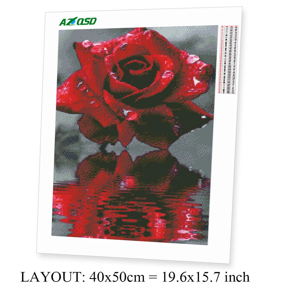 AZQSD домашний декор алмазная живопись, красные цветы черно-белые рукоделие Алмазная Вышивка Роза цветочная мозаика ручной работы подарок