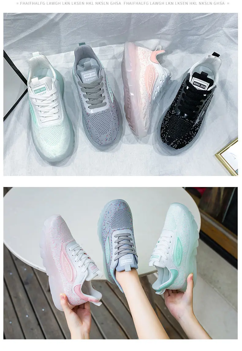 Женские блестящие спортивные туфли Hida, повседневные Модные дышащие туфли на плоской подошве из сетчатого материала, на шнуровке, весна-лето 2021