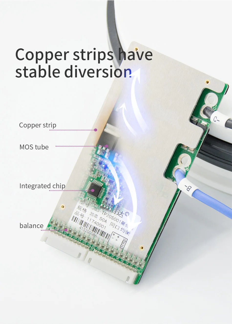 Балансировочная плата JBD BMS 17S 20S 60V 72V, сенсор температуры 30-50A, задняя часть литиевого аккумулятора LiFePo4 с защитой от падения, для аккумулятора BMS