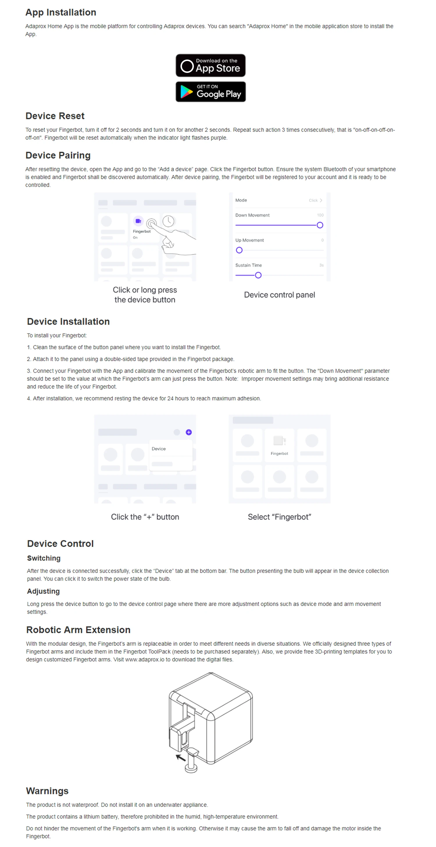 Сменная рукоятка: благодаря модульному дизайну рукоятка Fingerbot заменяется для удовлетворения различных потребностей в различных ситуациях.