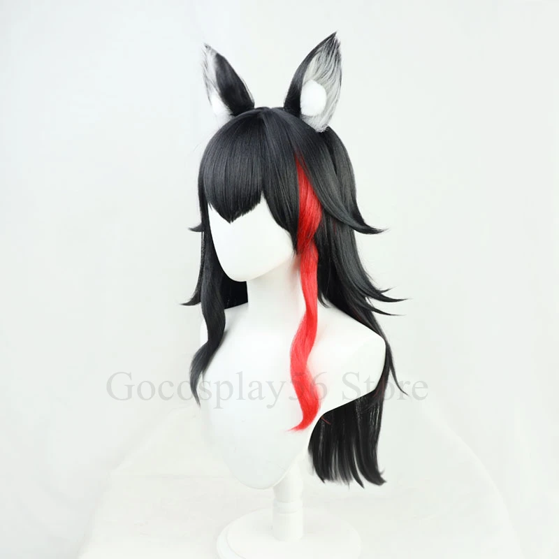 VTuber Ookami Mio парик уши Hololive геймеры черный красный хайлайт...