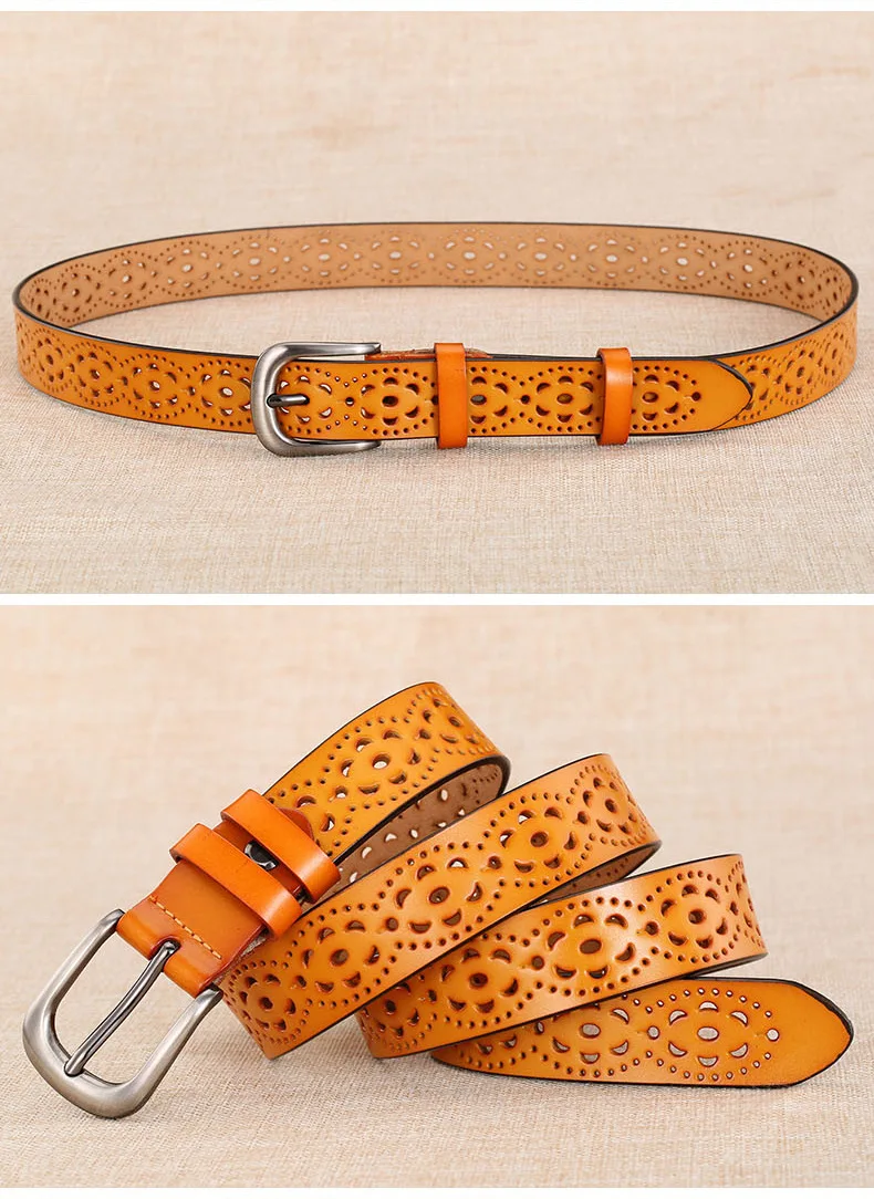 Женские ремни с рельефным цветком из натуральной кожи, высококачественные винтажные джинсовые ремни, дизайнерские ремни для леди, повседневные ремни