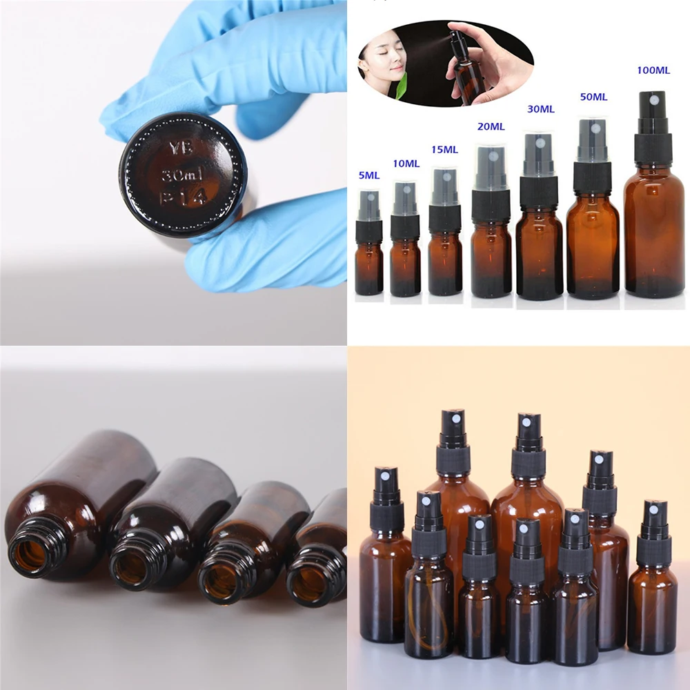 5-100 мл мини-спрей Янтарное стекло многоразовый флакон пустые флаконы для макияжа емкость для эфирного масла лосьона переносная дорожная бутылка