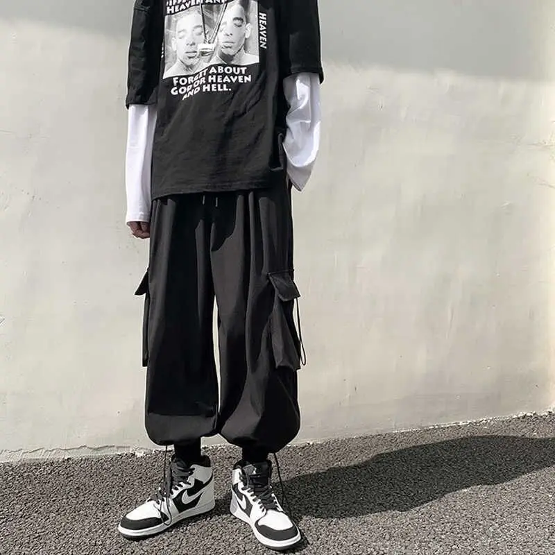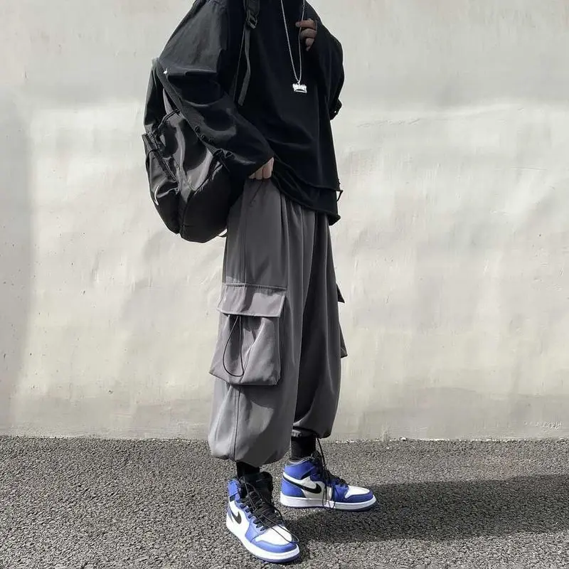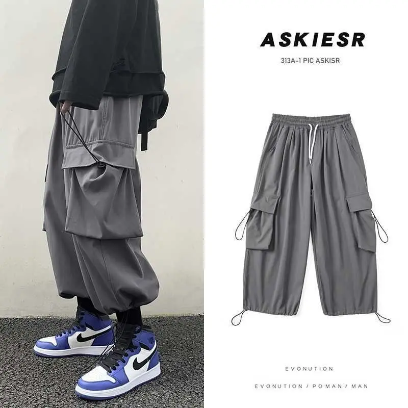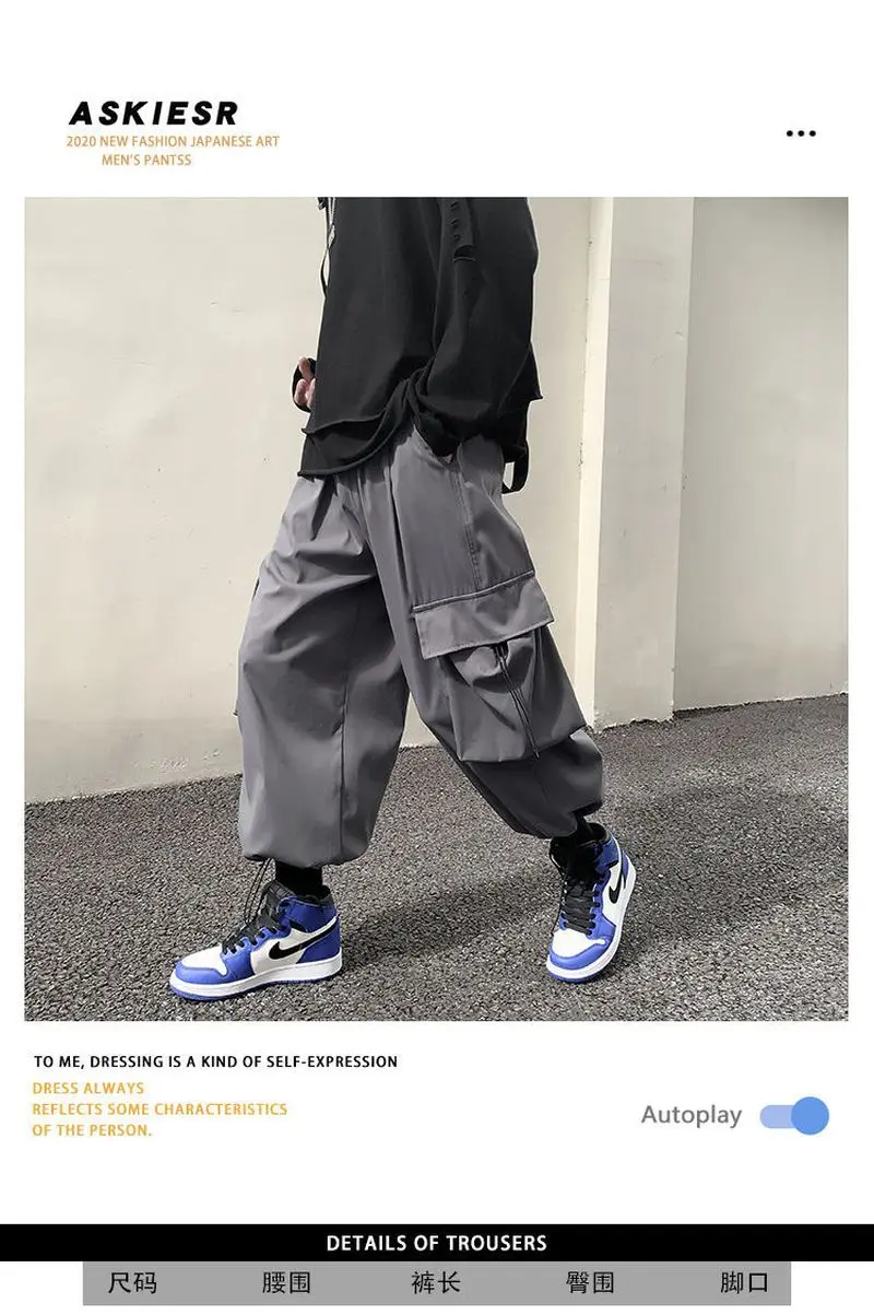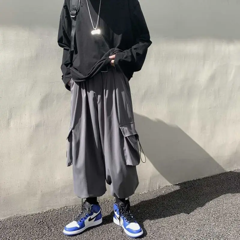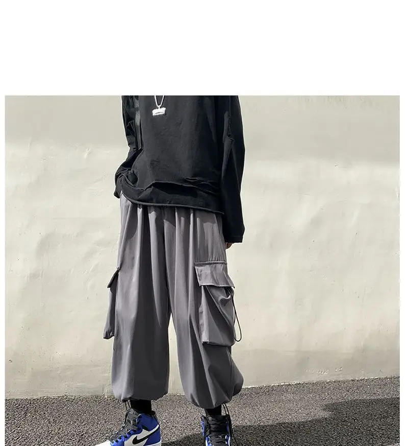 Брюки-карго мужские с широкими штанинами, прямые японские укороченн...
