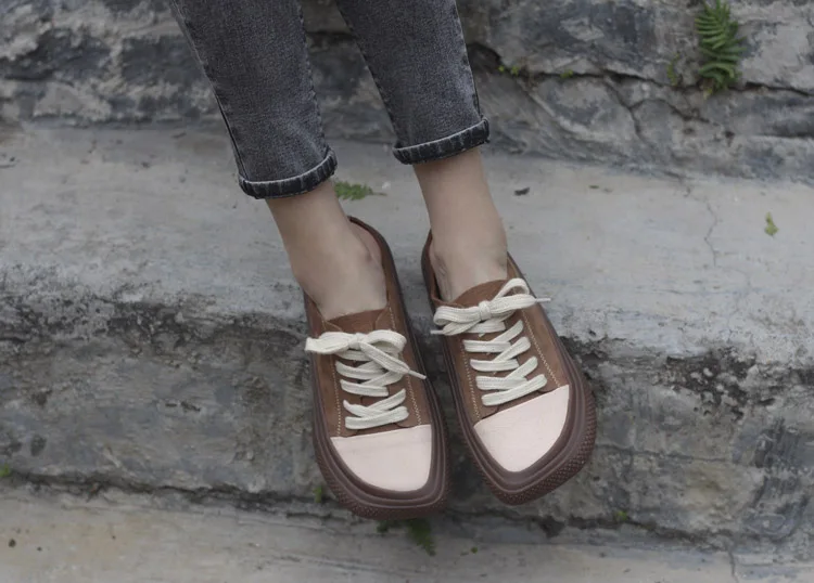 Женские туфли на плоской подошве, из натуральной кожи, с квадратным...
