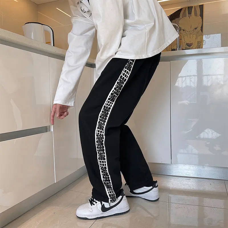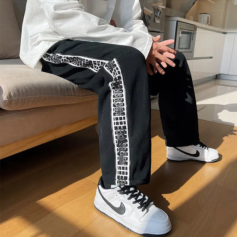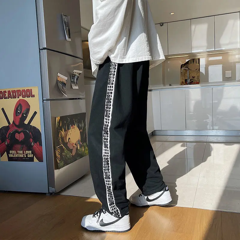Мужские повседневные брюки с надписью dark, Модные свободные прямые брюки для полных мужчин, Корейская версия молодежных брюк