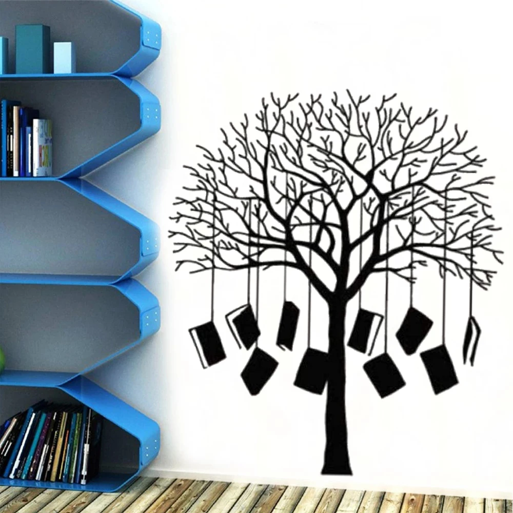 Настенные наклейки DW7012 с изображением книг и дерева, виниловые наклейки на стену для дома, библиотеки, чтения, углов, классной комнаты, книжного магазина, интерьера