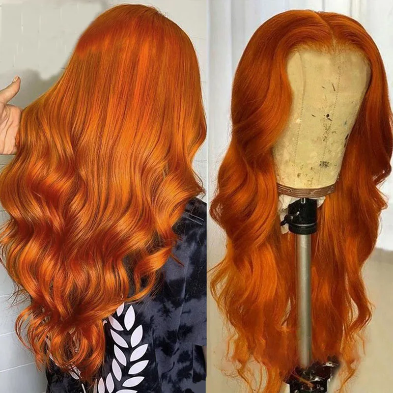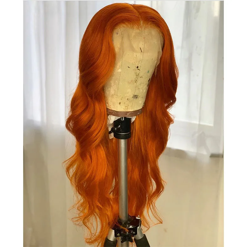 Парик из синтетических волос оранжевого цвета, объемная волна, 26 дюймов, плотность 150%, предварительно выщипанные Детские волосы, мягкие, для косплея