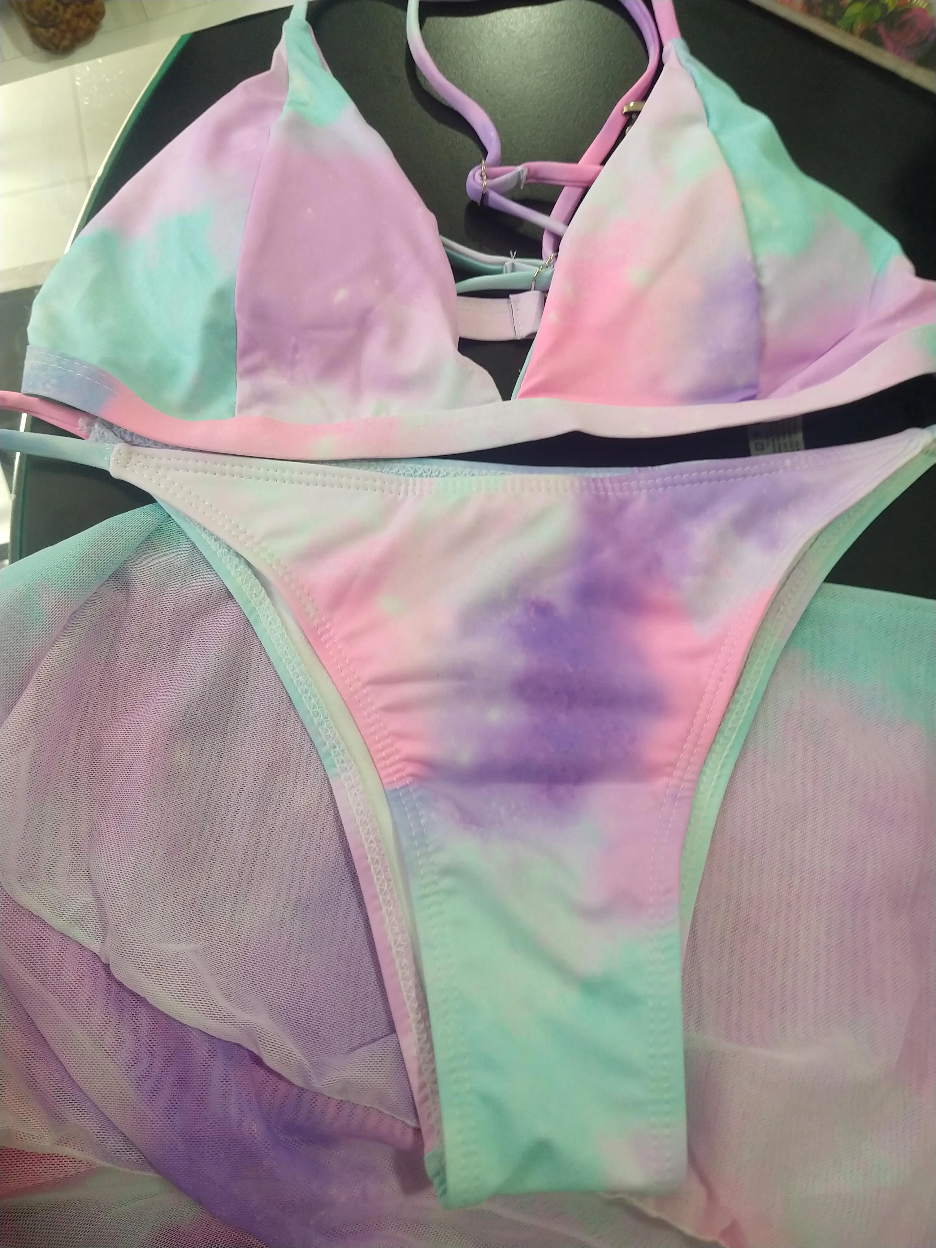 Купальники Tie Dye из трех предметов, женская летняя накидка, привл...