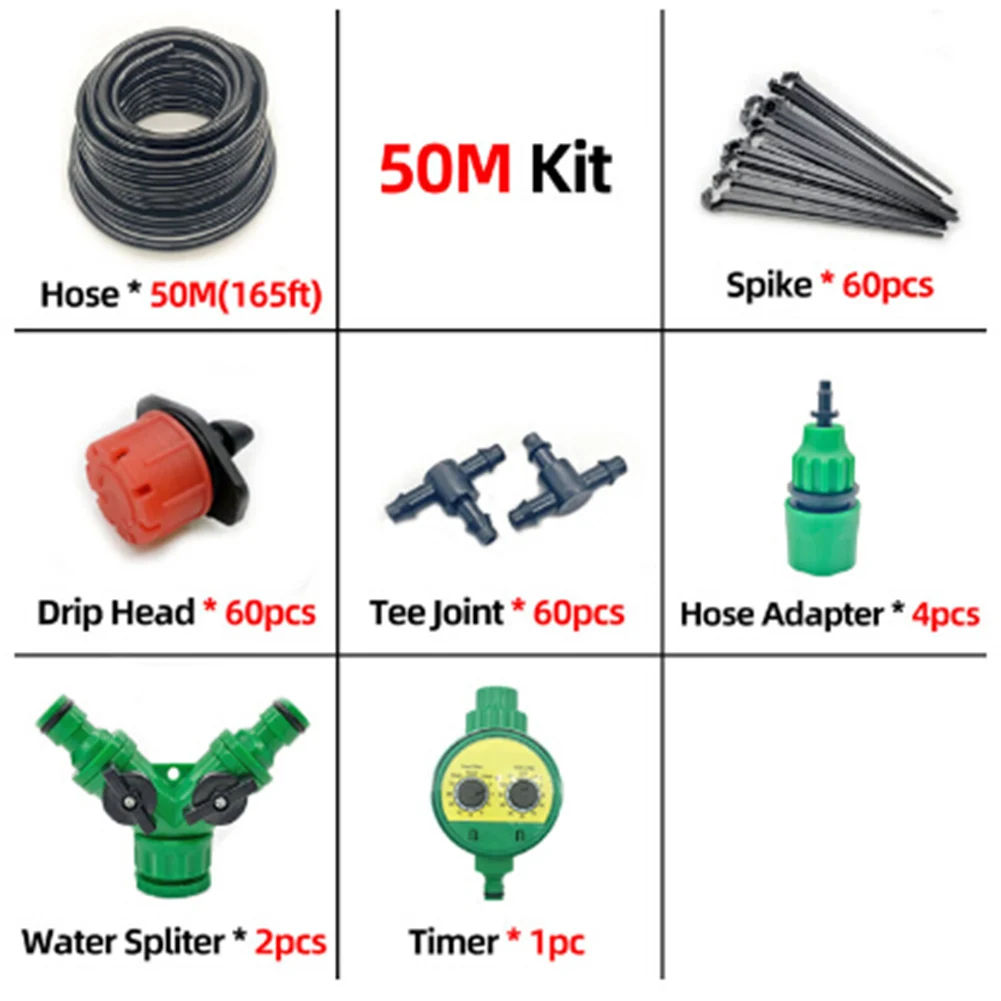 50 м самоавтоматическая садовая вода микро система капельного орошения шланг полива завод таймер контроллер комплект DIY капельницы набор туманаХарактеристика:-Эта система орошения используется для распыления и охлаждения. Комплексный набор для полива цветов, деревьев, кустарников, роз, овощей, лоз и т. д.-Комплект легко собирается и может обеспечить все необходимое для полной установки от крана, экономя до 70% воды.-Автоматический таймер делает полив очень удобным, без дополнительного труда.-Таймер может быть использован для установки программы полива для вашего сада, так что спринклеры и система орошения включены автоматически.-Экономия воды и времени: Использование интеллектуальных ирригационных систем может не только обеспечить эффективные водные ресурсы, но и значительно снизить затраты на рабочую силу за счет эффективного орошения.-Автоматический полив: наш таймер полива может поливать растения, когда их нет дома, и заботиться о них, чтобы улучшить жизнедеятельность растений.Включает следующее:Шланг * 50 м 1/4 ''шлангКапельница * 60Футболка * 60Длинные ногти * 60Адаптер шланга * 4Водоотделитель * 2Таймер * 1Примечание:В связи с различиями мониторов и эффектами освещения реальный цвет товара может немного отличаться от цвета на фотографиях. Спасибо!Возможны отклонения в 1-3 мм вследствие измерений вручную.