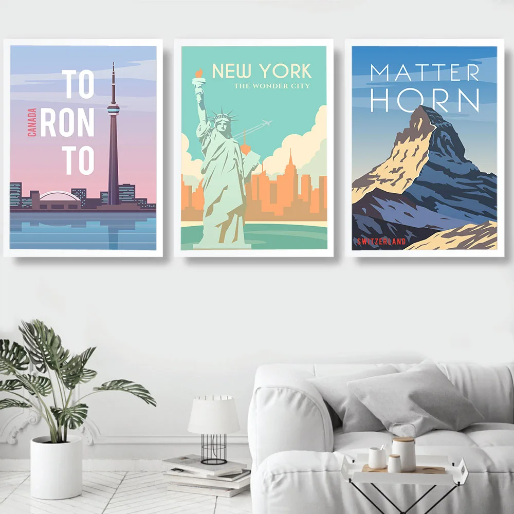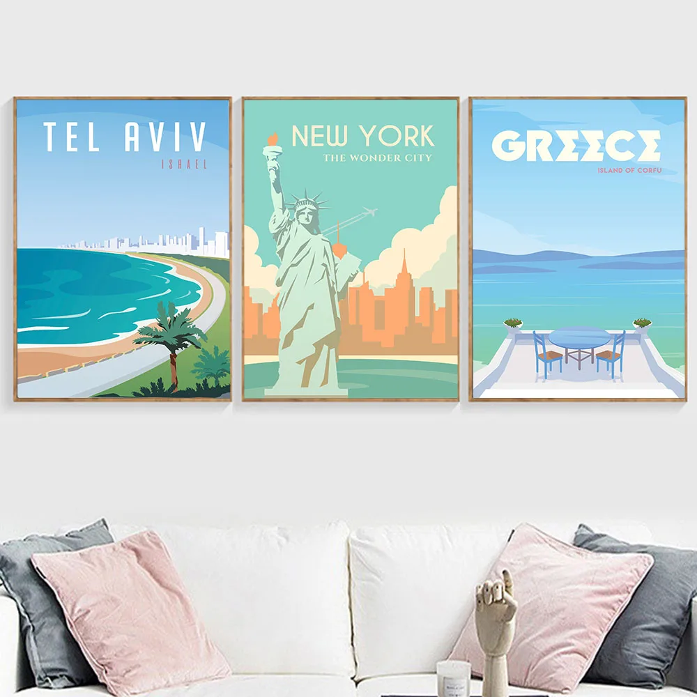Hd Печать на холсте художественная живопись Нью-Йорк Париж матерхорн Греция Тель-Авив винтажные путешествия города пейзаж плакаты настенная живопись