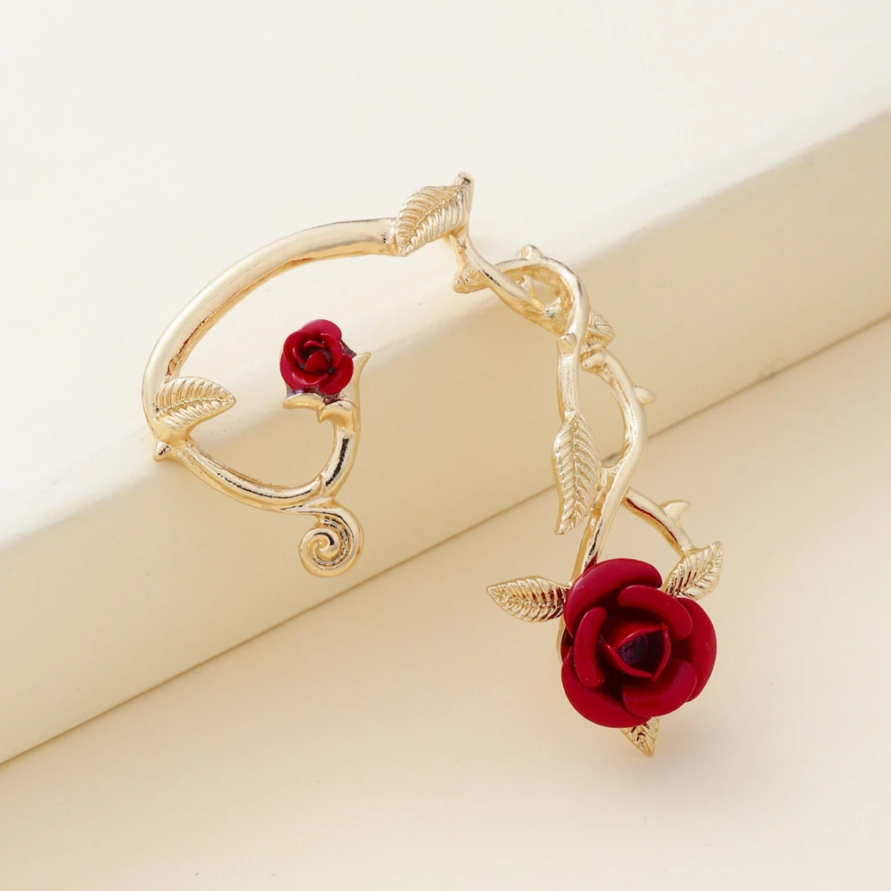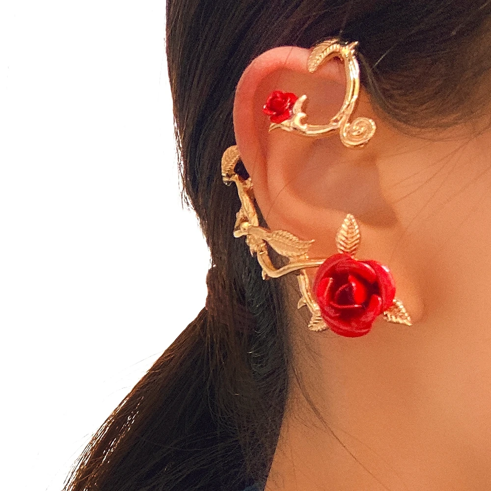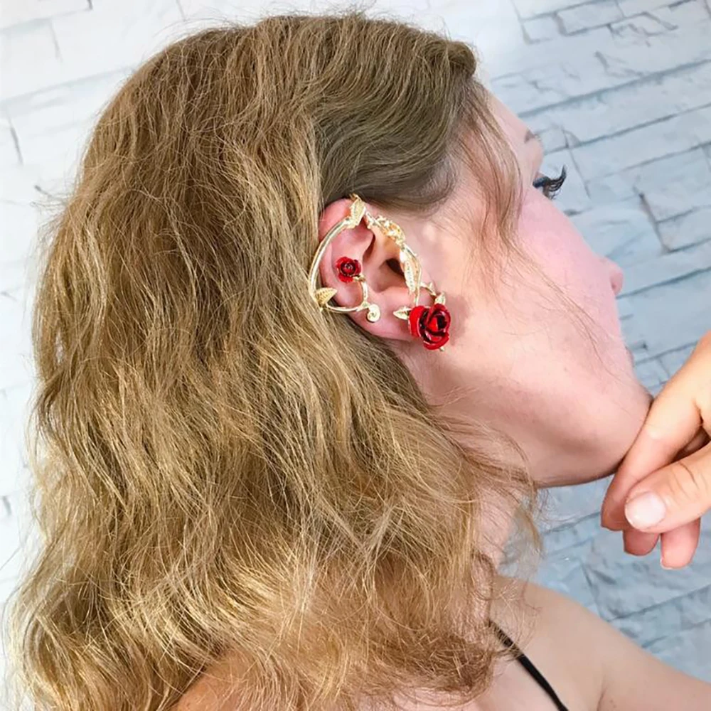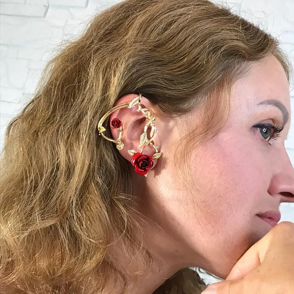 Женские винтажные серьги-каффы Lost Lady, элегантные витые серьги с красной розой на хрящевой основе, свадебный подарок