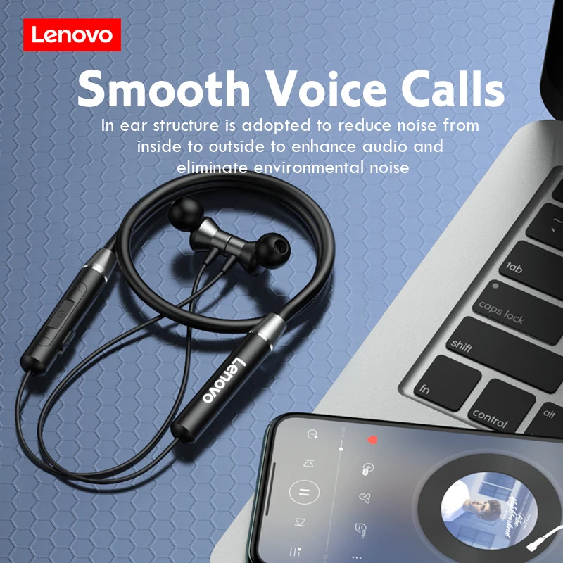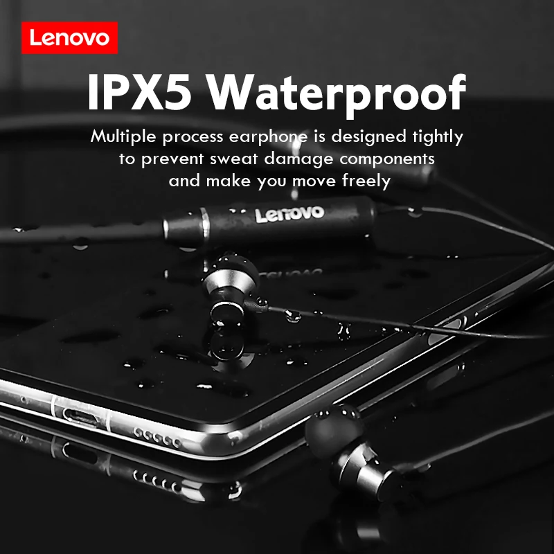 Беспроводные наушники Lenovo HE05, Bluetooth-Совместимость с шейным ремешком 5,0, шумоподавление, IPX5 водонепроницаемая Спортивная гарнитура с микрофоном