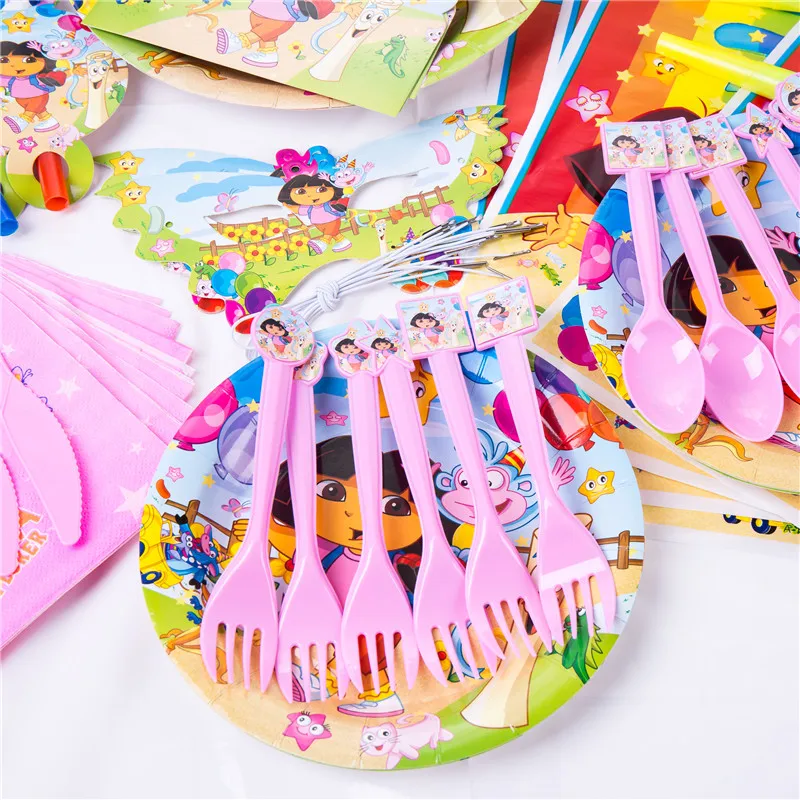 Тема Дора Explorer детская одноразовая посуда для вечеринки украшение на день рождения скатерть бумажные чашки и блюдца детский душ