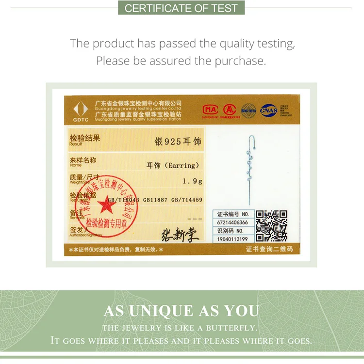 Номер Сертификатаbamoer fashion jewelry