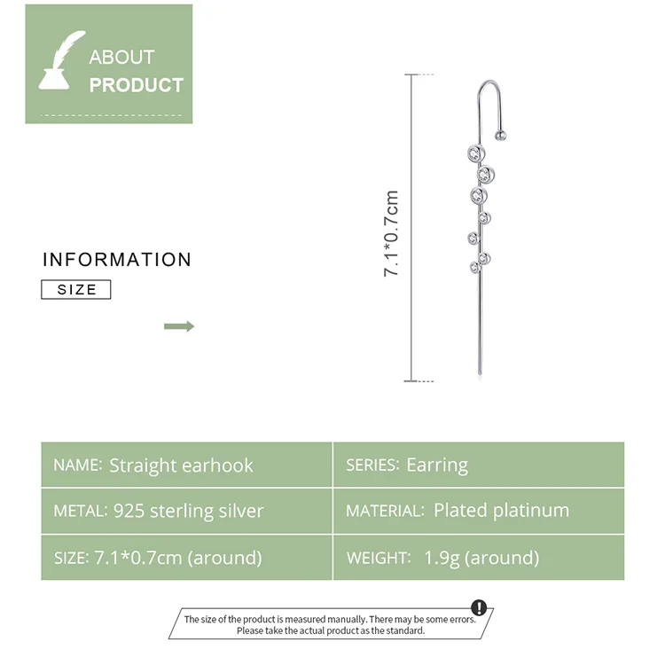 ❤【Примечание 】 1 шт./серьги ❤【Description】Creative ушные крючки одной формы, украшенные сверкающим цирконом, переосмысливают индивидуальность и моду в новом образе ношения. ❤【Спецификация 】размер: 7,1*0,7 см, вес: 1,9 г ❤【Материал: 】 серебро 925 пробы и паве с фианитом и платиной, эти серьги не имеют никеля, не содержит свинца, не содержит кадмия, гипоаллергенны. Гарантия качества, приятный для кожи, удобный и удобный в носке, не вредный для вашего здоровья. ❤【На подарок 】 1 пара сережек и 1 шт. Изысканная Подарочная коробка, которая является идеальным подарком для мамы, дочки, правки, тети, сестер, друзей. ❤【BAMOER YOU】 чтобы обеспечить ваше полное удовлетворение, любые вопросы о продукции BAMOER, просто не стесняйтесь обращаться к нам, мы постараемся сделать все возможное, чтобы помочь вам.