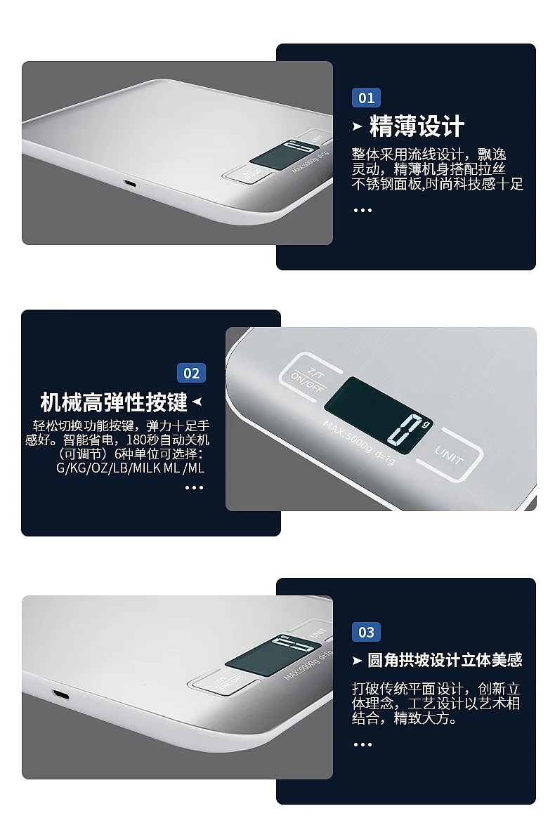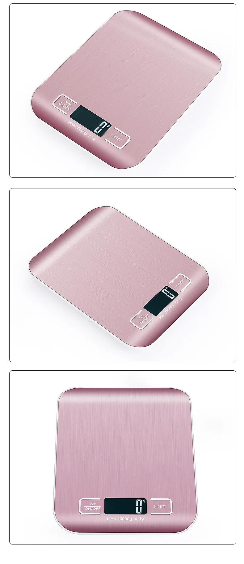 Высококачественный и Цифровой точный баланс Большой ЖК Оснащен высокоточной системой датчиков деформации Большой ЖК-дисплей и отличный датчик нагрузки Автоматический сброс нуля/отключение питания Емкость: 5 кг (11 фунтов) или 10 кг (22 фунтов) Единицы: г кг унции мл фунты Точность: 1 г Диапазон ошибок: + - 3g Цвета: серебристый, розовое золото Полнофункциональная клавиша: вкл/выкл/тара/ноль Индикатор перегрузки/низкого заряда батареи Питание от аккумулятора 1,5 В раза 2 ААА (не входит в комплект) Размер шкалы (Д * Ш * В): 180 мм * 140 мм Посылка Цифровые кухонные весы Руководство на английском языке Розничная коробка Примечание: Снаружи один слой (синий цвет) или два слоя (Первый Синий, второй зеленый цвет) защитной пленки, вам нужно оторвать ее перед использованием, это будет серебро или розовое золото!