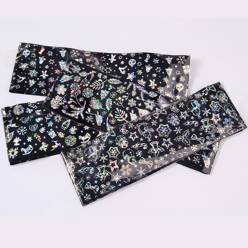 60x4 см наклейки для ногтей 3D Рождественский дизайн наклейки снежинки звезды блестящие лазерные переводные наклейки