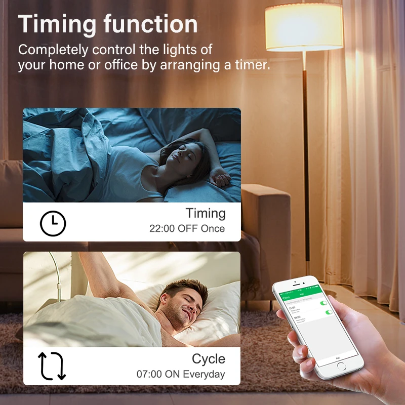 3. Функция синхронизации: Возьмите полный контроль над своим домом или офисным освещением благодаря таймеру расписания, который позволит вам спланировать точное время для автоматического включения/выключения ламп и приборов