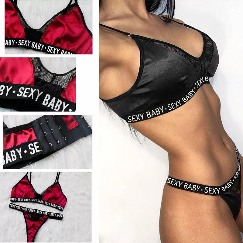 Сексуальное нижнее белье с надписью, кружевной женский купальник би...