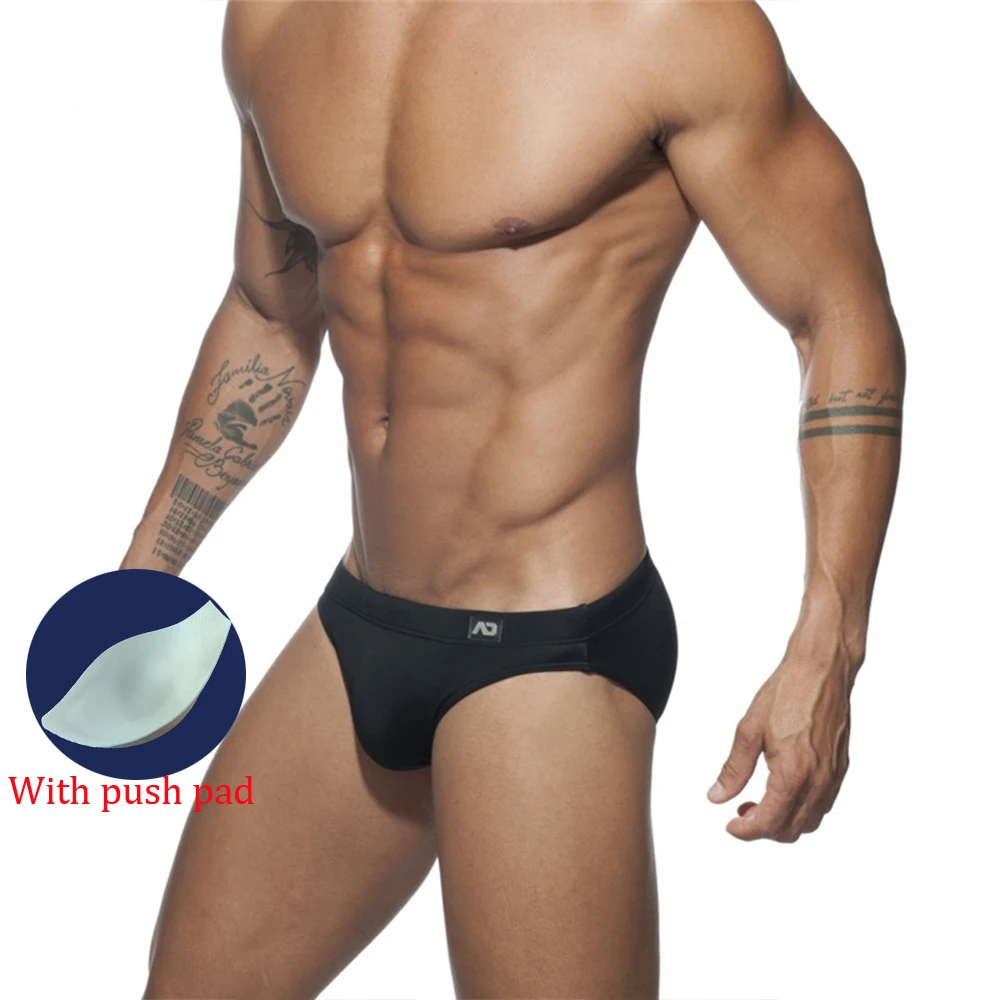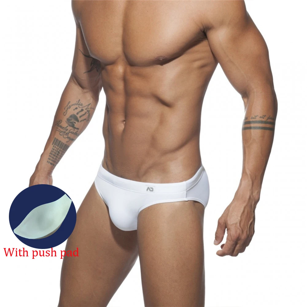 Мужские плавательные аксессуары, трусики бикини, сексуальный нейлоновый однотонный купальник, быстросохнущие шорты с эффектом пуш-ап для пляжа, плавания, серфинга