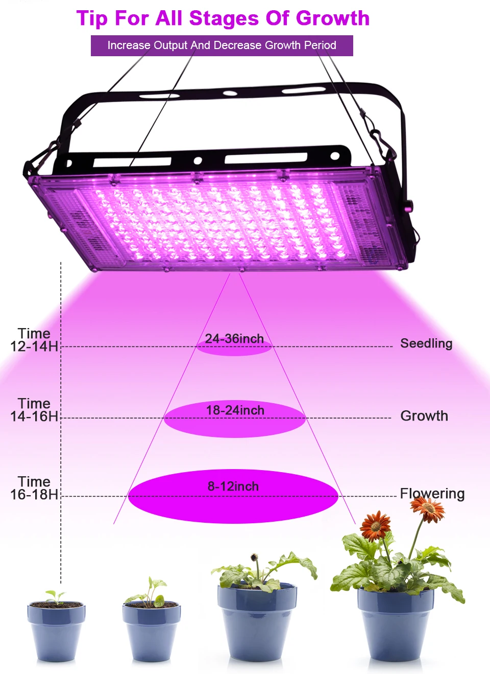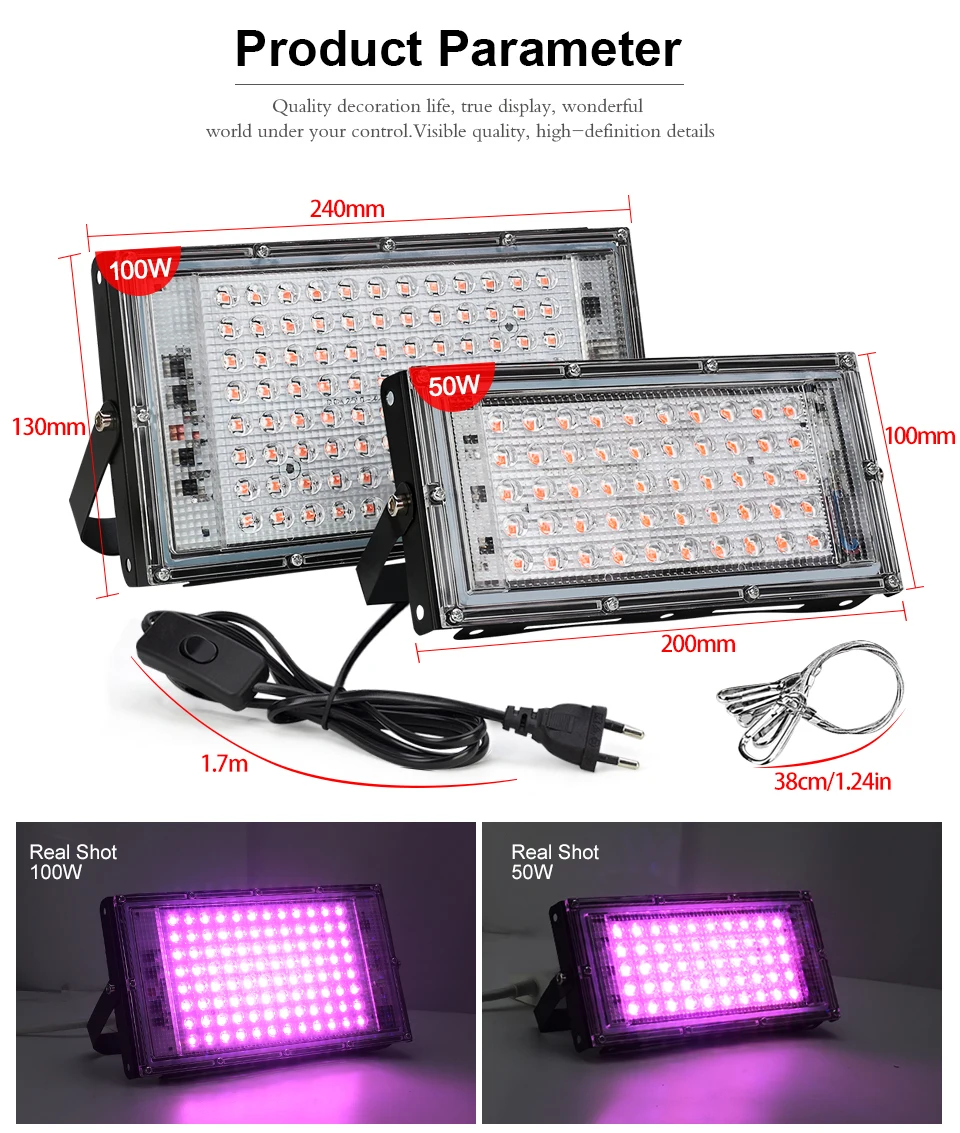 Светодиодный толампа, светодиодсветильник лампа полного спектра для выращивания растений в теплицах и гидропонных системах, 220 В, 100 Вт, 50 Вт