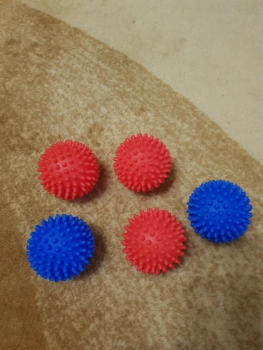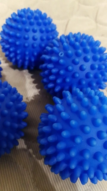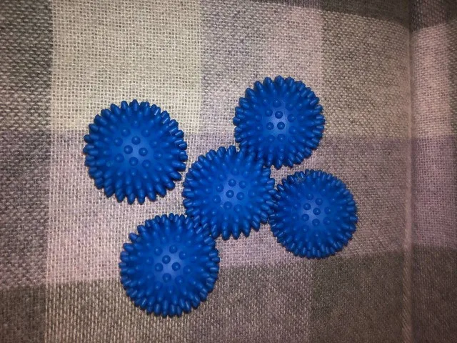 Есть 5 шариков для губки одежды, внутри сушилки. Я уже попробовал статью, и ее результат хороший, так как она не позволяет одежде быть поврежденной и более пушистой. Они синие и все одинаковые