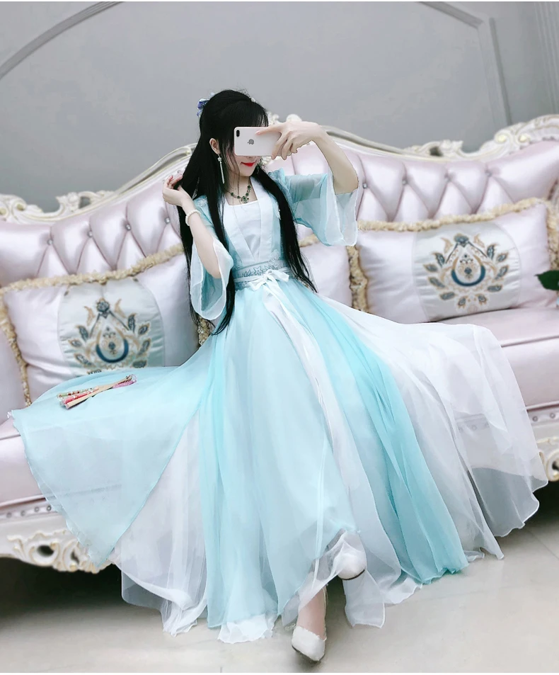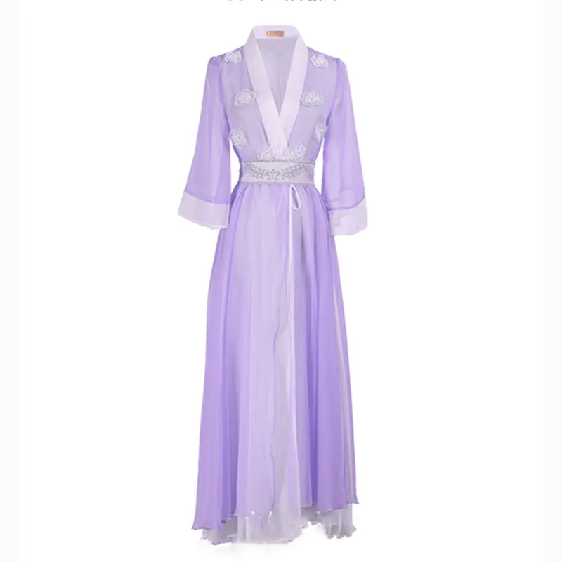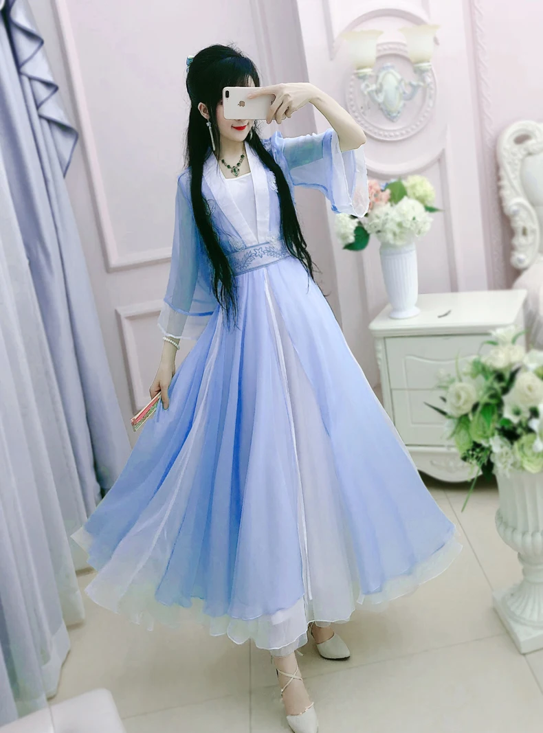 Шифоновое винтажное длинное платье Hanfu, платье для женщин, традиционная синяя, зеленая, фиолетовая, античная фотография, классическая одежда для вечеринки
