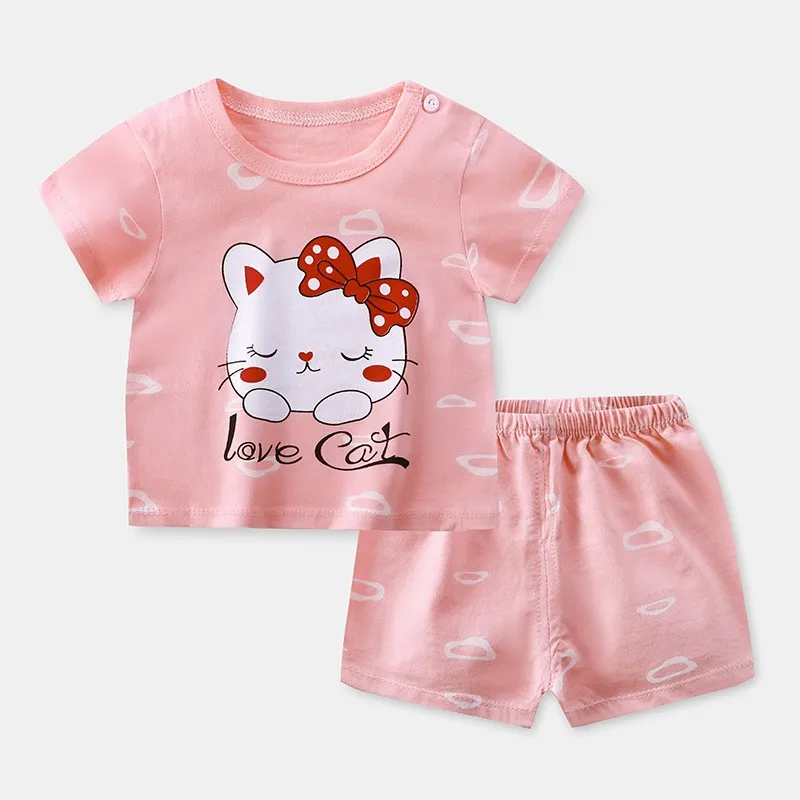 Комплект детской одежды из 2 предметов, летняя футболка с коротким рукавом и шорты для сна, мультяшный рисунок, для маленьких мальчиков и девочек