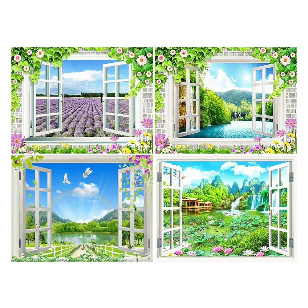 LZAIQIZG алмазов картина весенний пейзаж окна алмазной вышивкой Озеро камни в форме ромбакруглые стразы вышивка крестиком декор с изображением природы