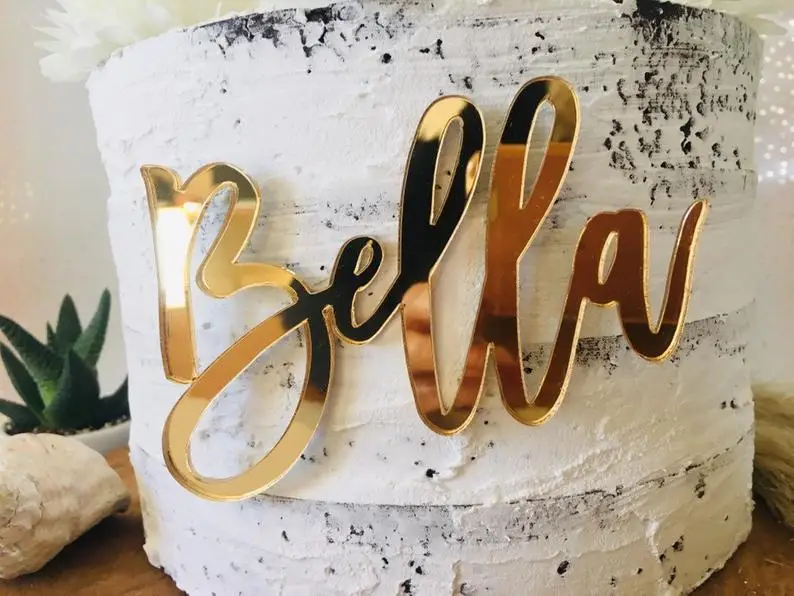 Сценарий формулировка имя Шарм Зеркало акриловое волокно, кекс день рождения торт Топпер, изготовленный на заказ торт табличкой именинный торт фигурки жениха и невесты; Вечерние украшения