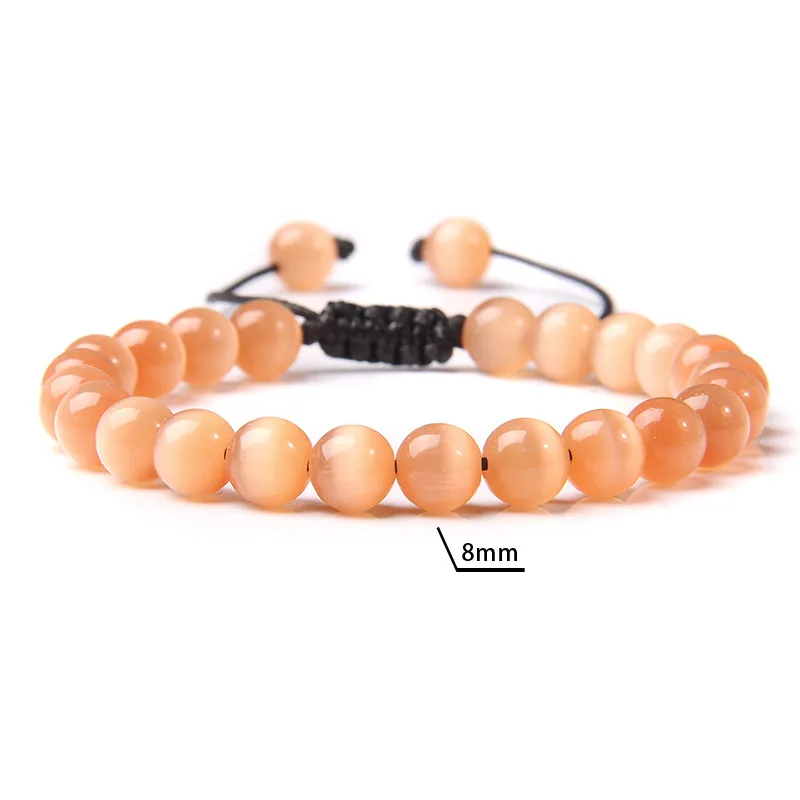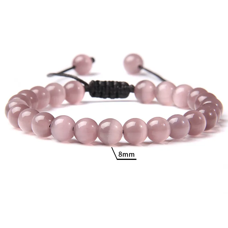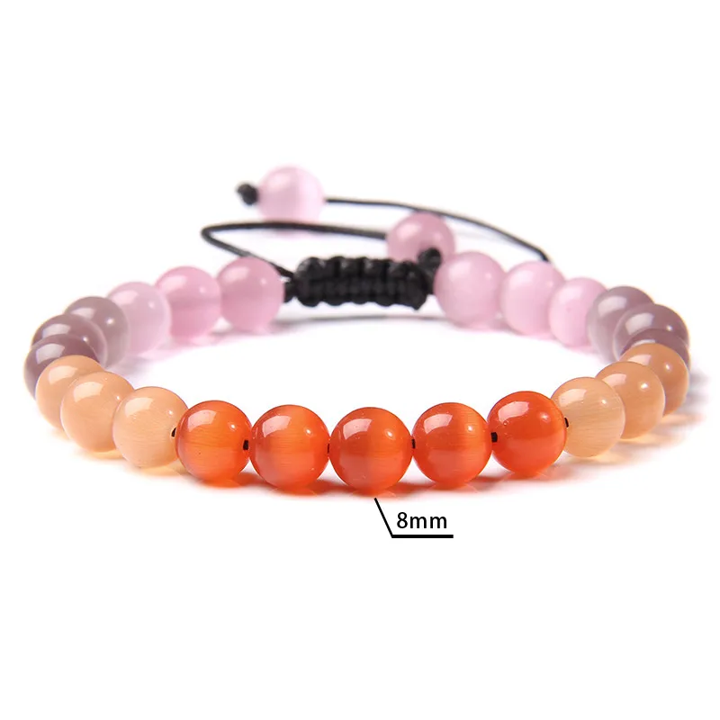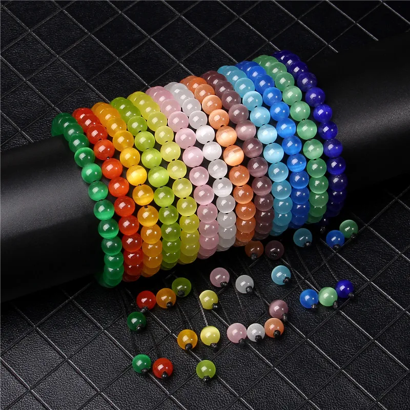 Браслет из бисера, кошачий глаз, с цветными опалами
