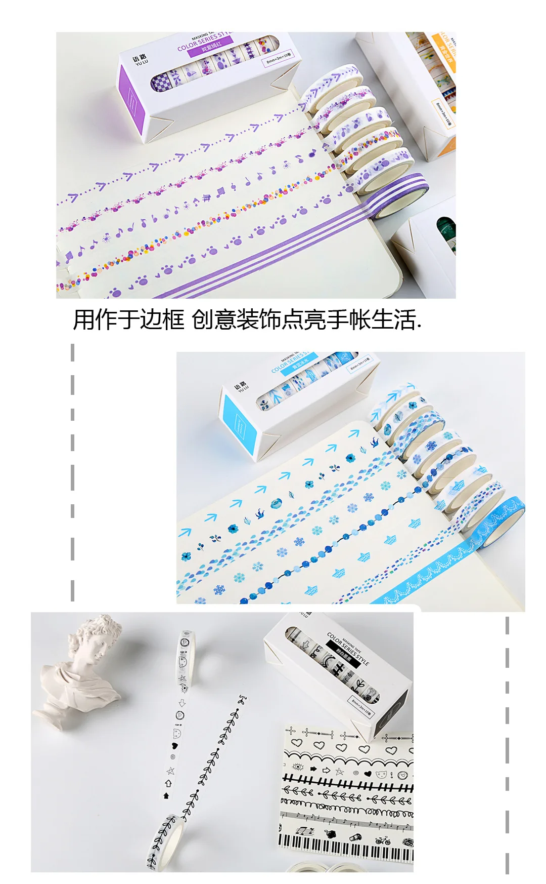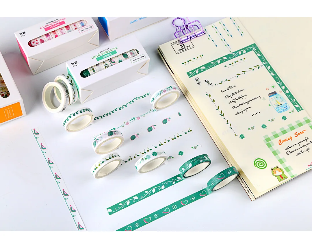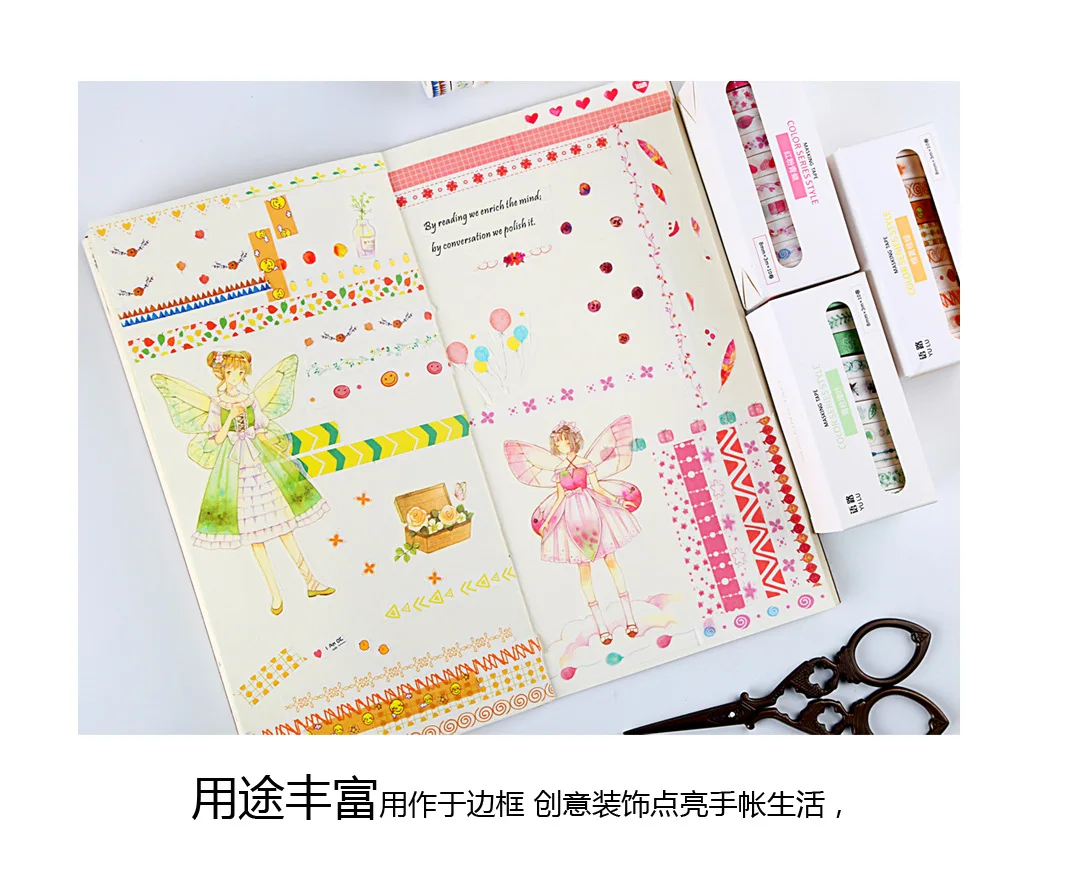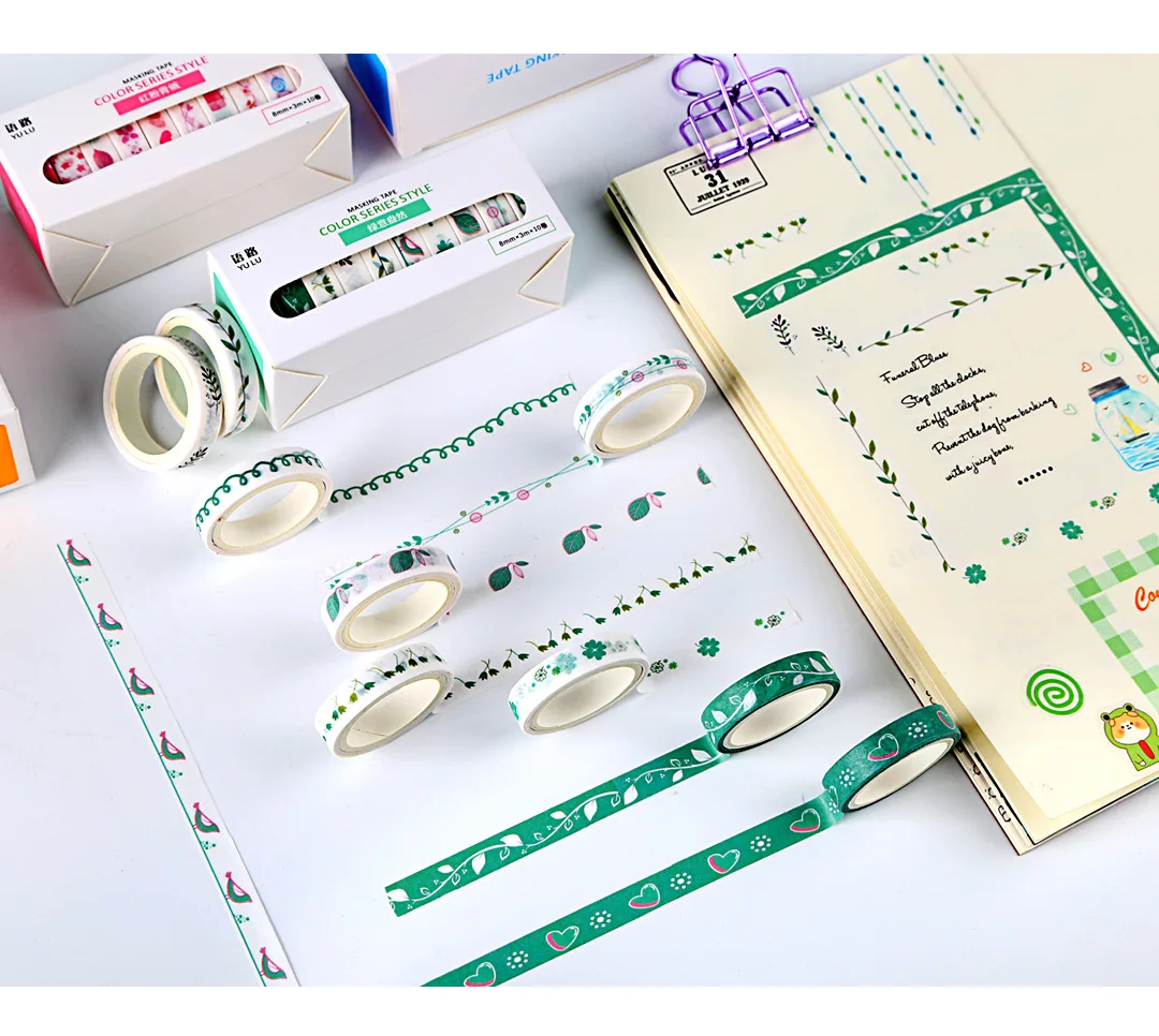 ПолосатаясетчатаяЦветочная Базовая однотонная бумажная Васи-лента клейкая лента самодельный стикер для скрапбукинга этикетка Маскировочная лента
