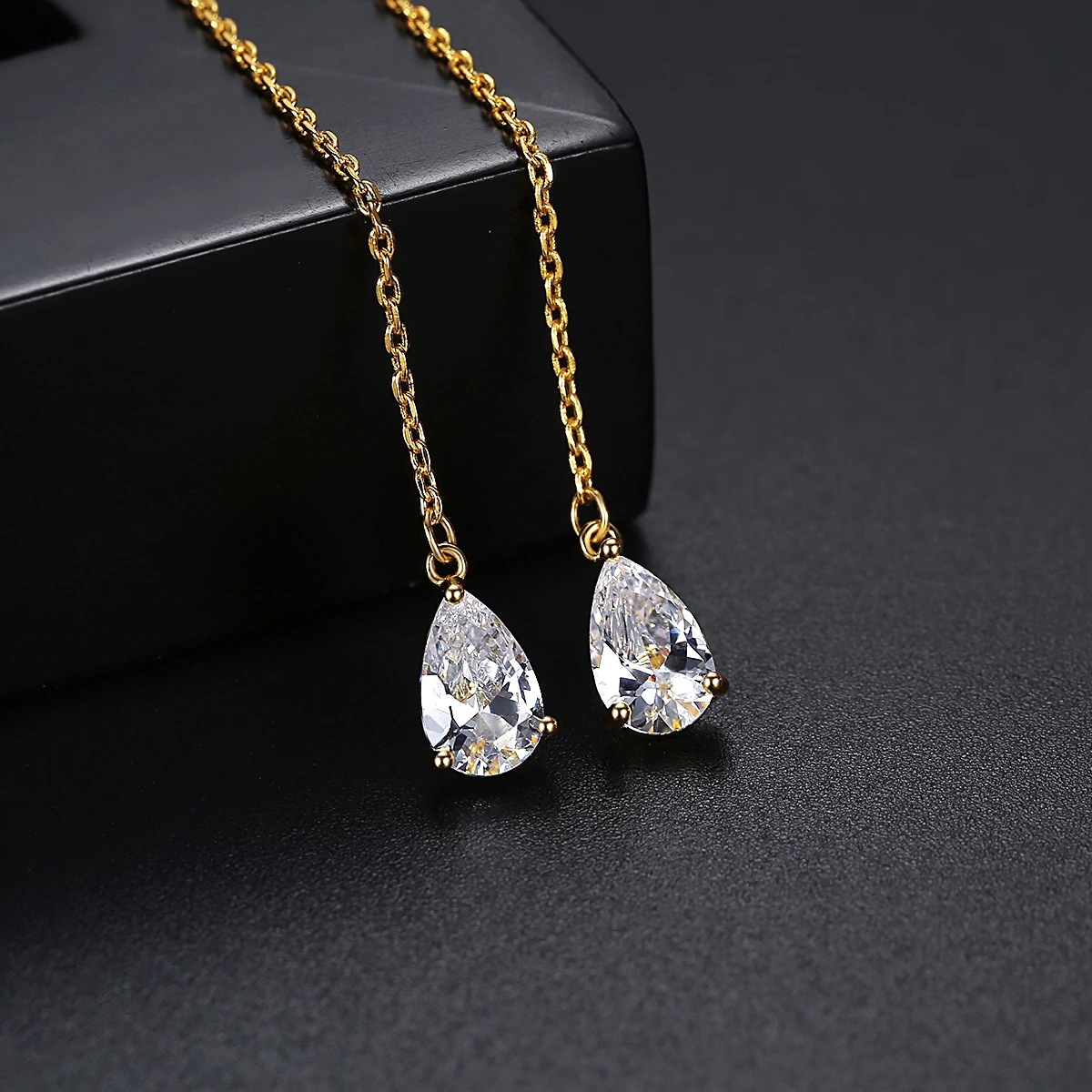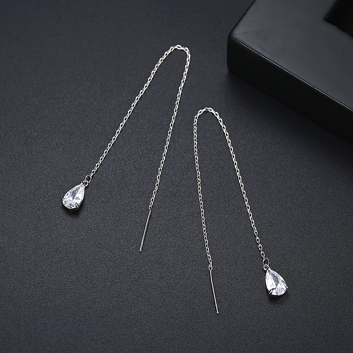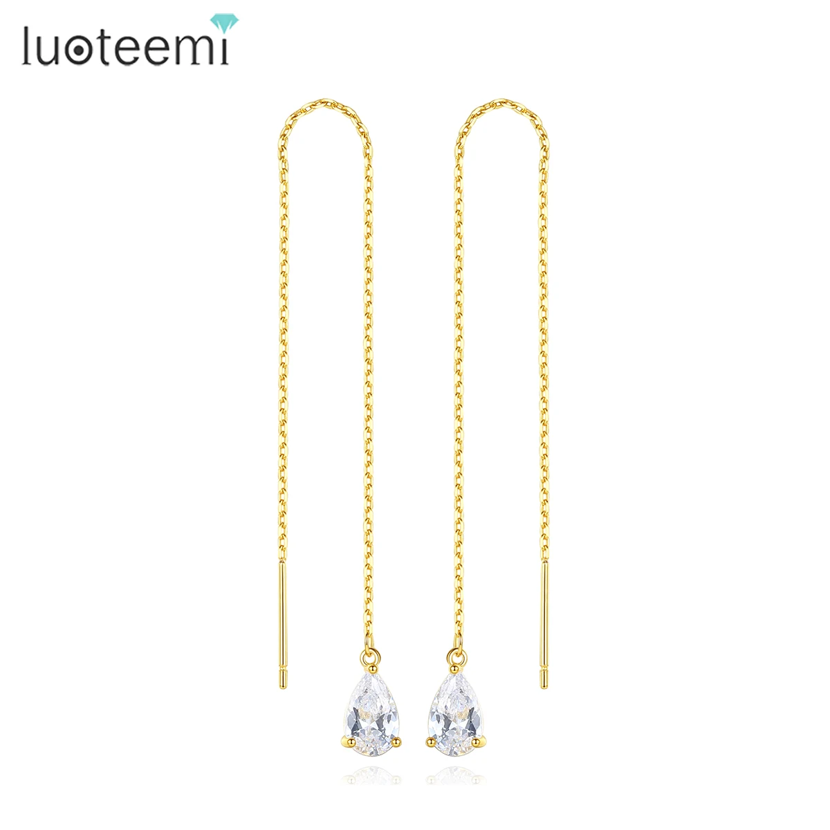 Серьги-подвески LUOTEEMI в форме капли воды для женщин, двухцветная цепочка с кубическим цирконием, модные ювелирные изделия, рождественские подарки, Orecchini Donna