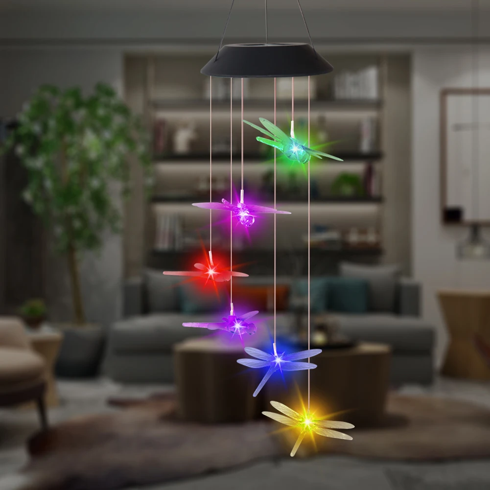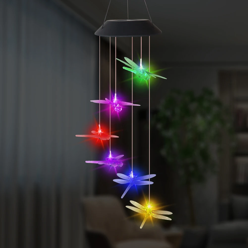 Стрекоза Изменение цвета солнечной энергии ветер Chime лампы цвет ful Windbell подвесной светильник водонепроницаемый открытый висящие декоративные светильники Светильник s для дома и сада