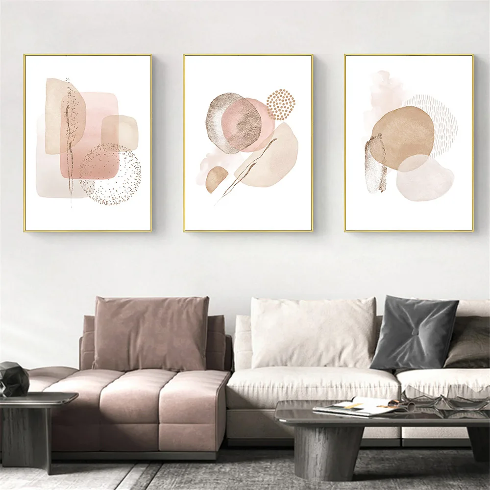 Розовая бежевая Геометрическая Печать на холсте, современные абстрактные настенные художественные принты, Постер в стиле бохо, настенные картины в скандинавском стиле, декор для гостиной