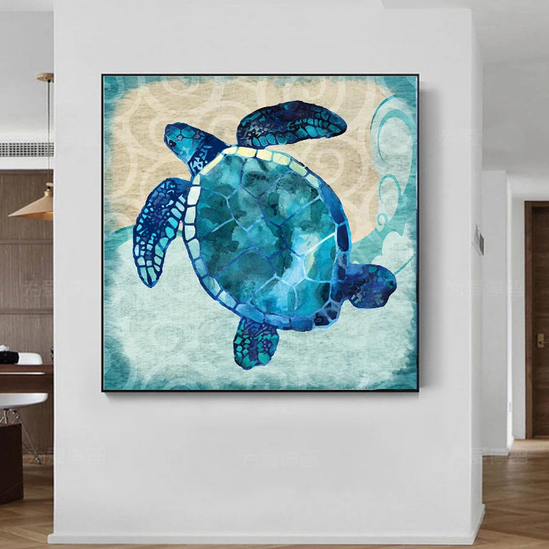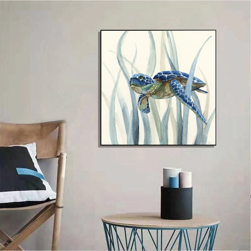 Абстракция морских животных, акул и Дайвер, холст, живопись, соврем...