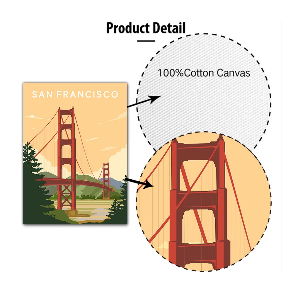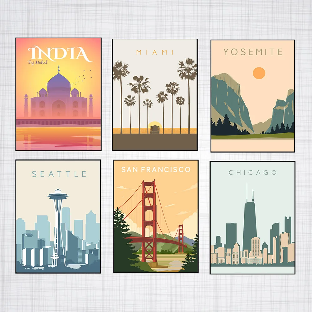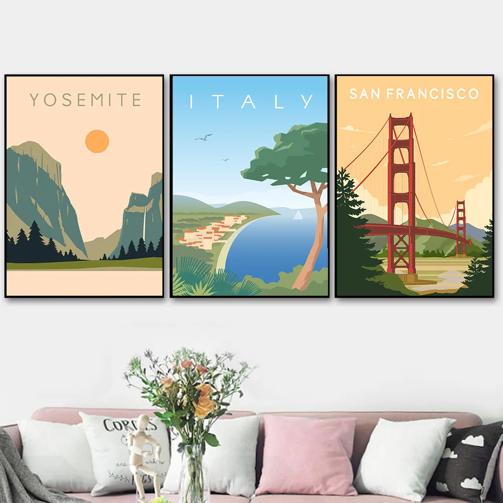 Картина на холсте с высоким разрешением, винтажный постер на стену с изображением Сан-Франциско, Сиэтл, йосемат, Майами, Италия, путешествия, города, пейзаж