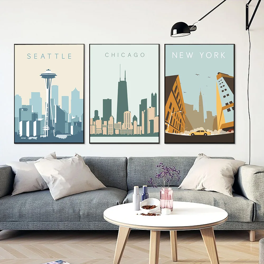 Картина на холсте, Минималистский плакат, Индия, США, Шанхай, Пекин...