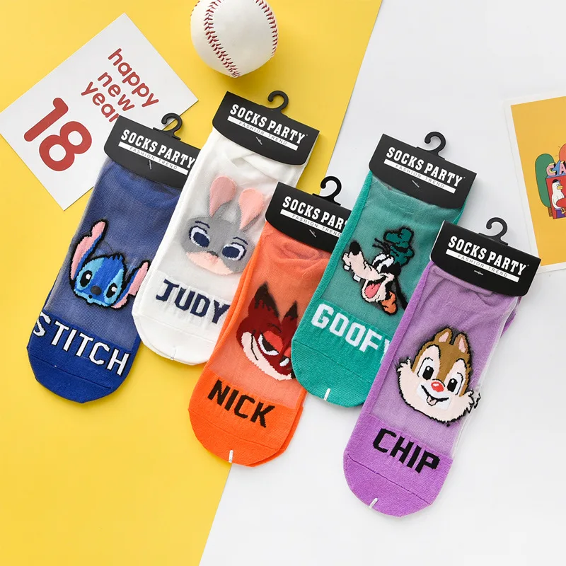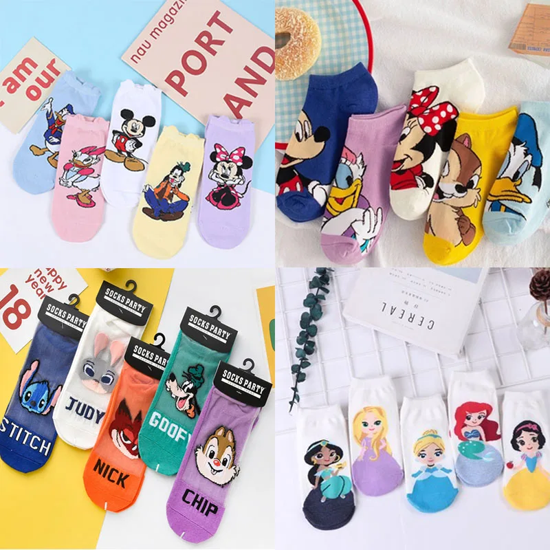 Носки женские короткие диснеевские, хлопковые с милыми мультяшными животными, Микки зверополис, для девочек, дикие короткие носки без пятки, 5 пар, весна-лето