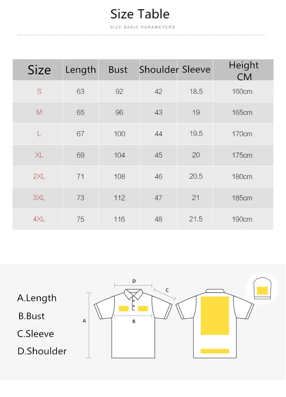 SizeS M L XL 2XL 3XL 4XL