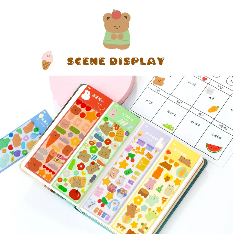 4 листа медведь альбом для стикеров мини Размеры ноутбука наклейки на ногти, для художественного оформления ногтей, наклейки для скрап-календари