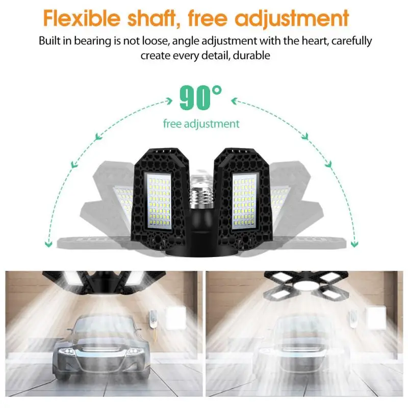 -Деформируемый потолочный светильник: светодиодное освещение гаража светильник ing с уникальным регулируемым широкоугольным дизайном, Каждое крыло 90 градусов регулируется, который может иметь идеальный гараж светильник ing распределения кривой в соответствии с вашим приложением, это позволит покрыть светильник на 360 ° площади. Просто идеально подходит для гаража, мастерской, склада, подвала, автомагазинов, офисных автомобилей, торговой почты, мастерской, где угодно нужен яркий светильник.