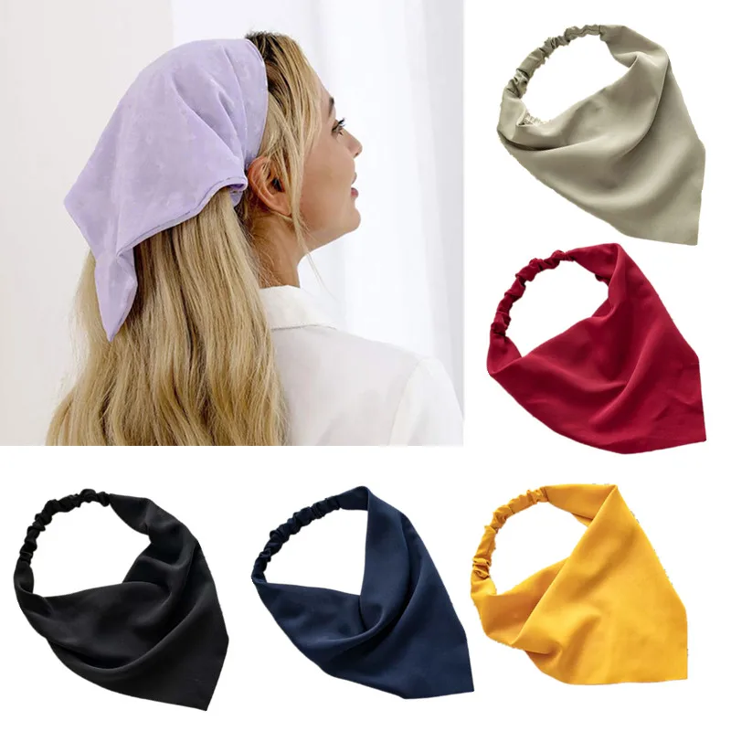 Летние однотонные Женские Треугольные банданы для девочек, шарф для волос, тюрбан, эластичная повязка на голову, 2021, модная повязка на голову, аксессуары для волос