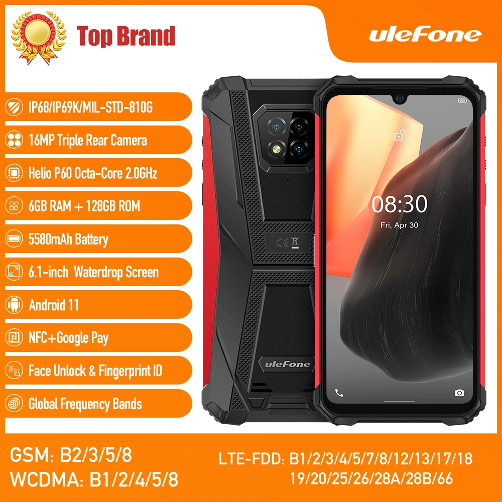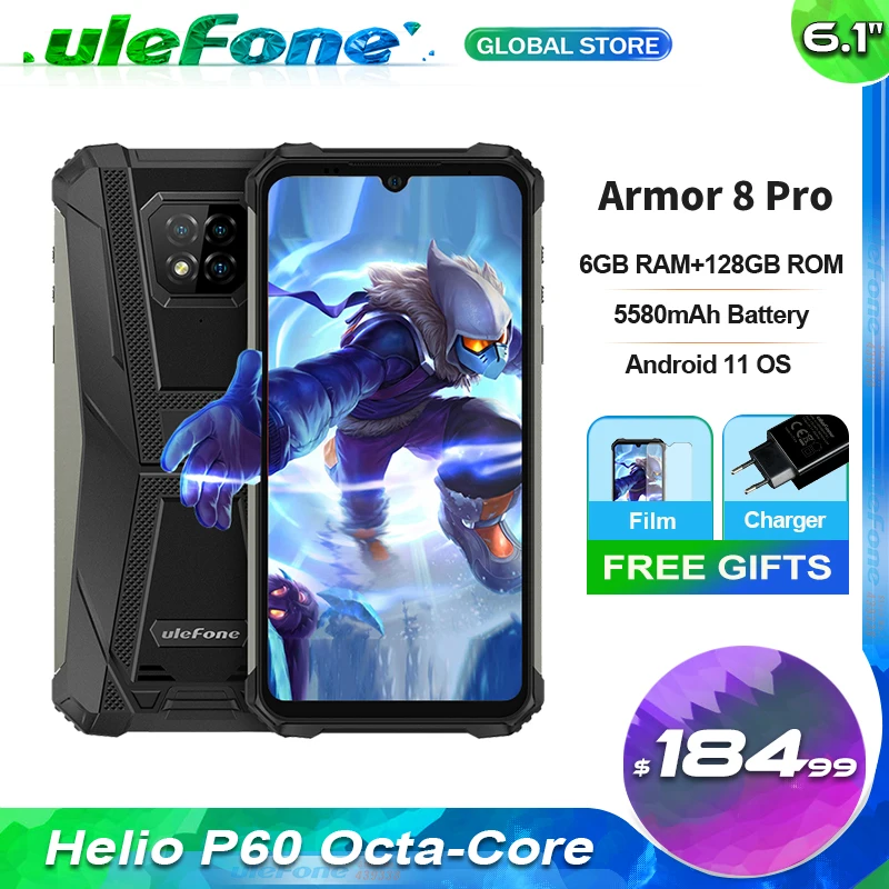 Защищенный смартфон Ulefone Armor 8 Pro, Helio P60, на базе Android 11, HD экран 6,1 дюйма, 6 ГБ + 128 Гб, NFC, 5580 мАч, водонепроницаемый мобильный телефон