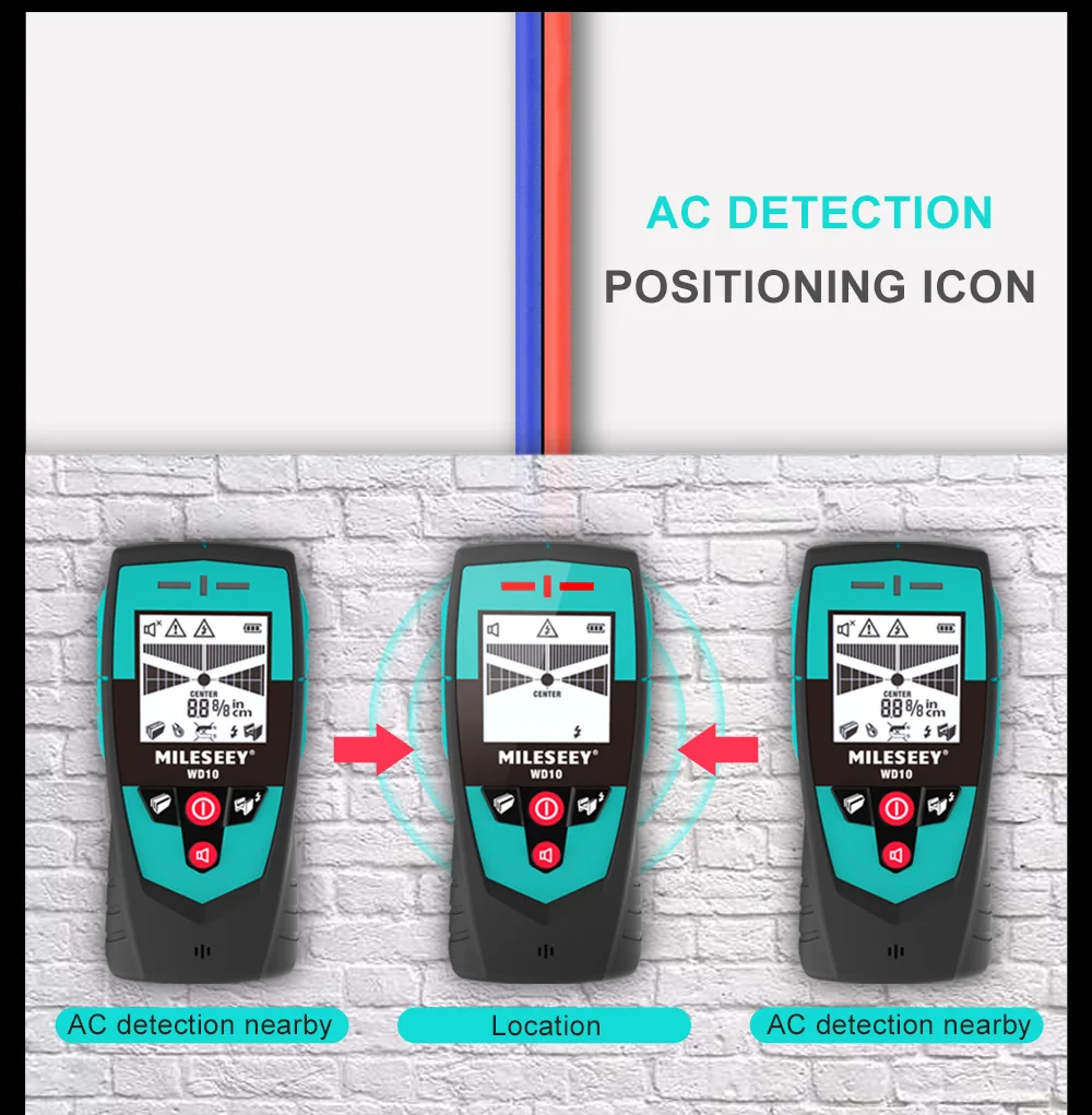 Многофункциональный настенный сканер Mileseey WD10, большой зонный датчик для металла, неметаллических проводов переменного тока, с ЖК-дисплеем и звуковым сигналом