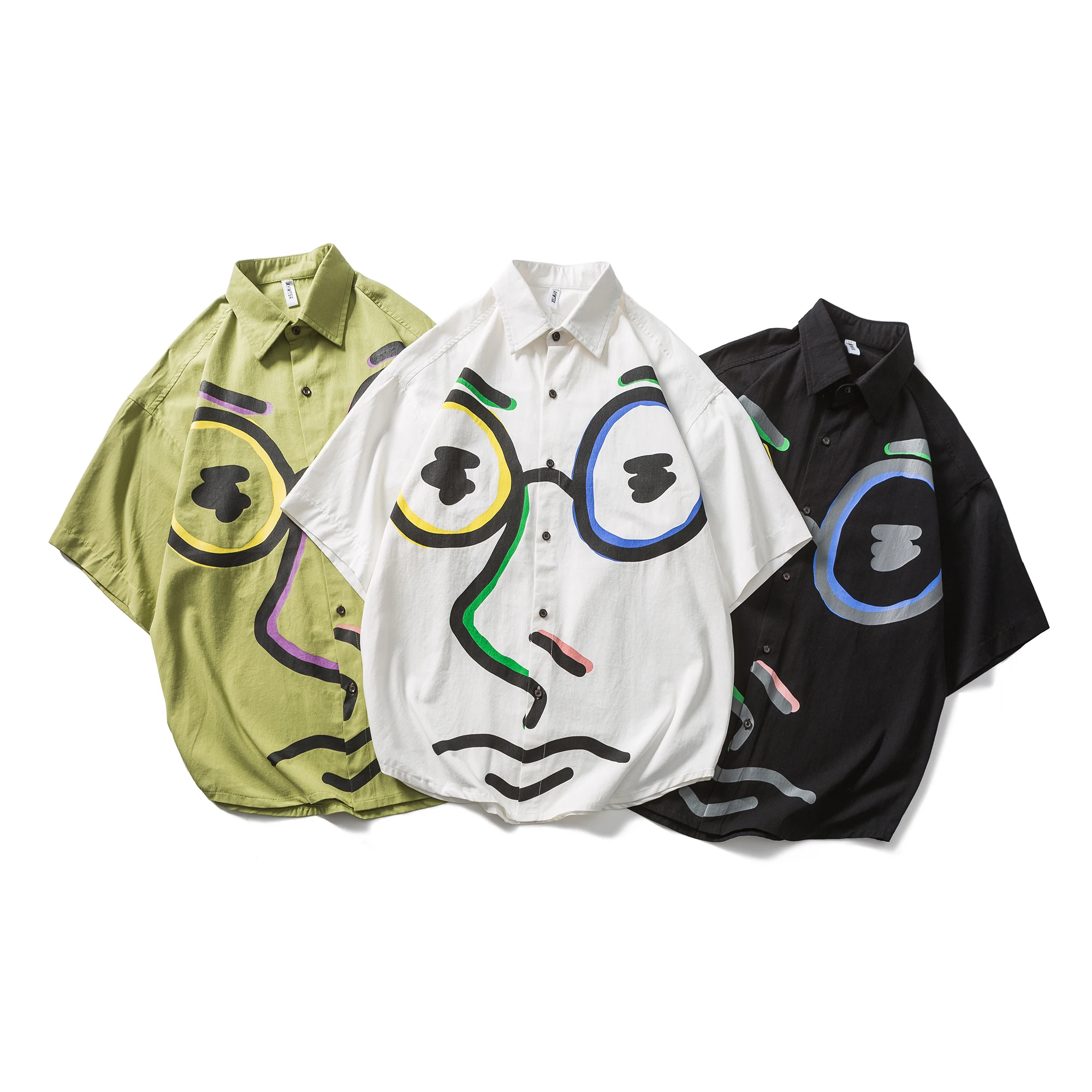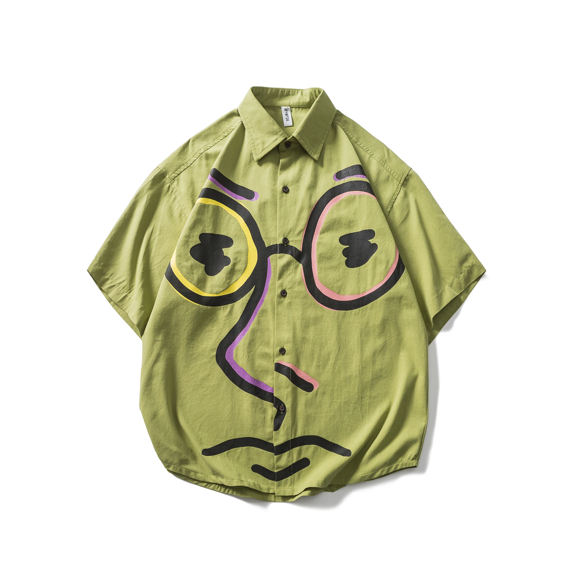Рубашка LAPPSTER-Youth мужская с принтом Большого Лица, летняя дизайнерская кавайная винтажная рубашка в стиле Харадзюку, 2022