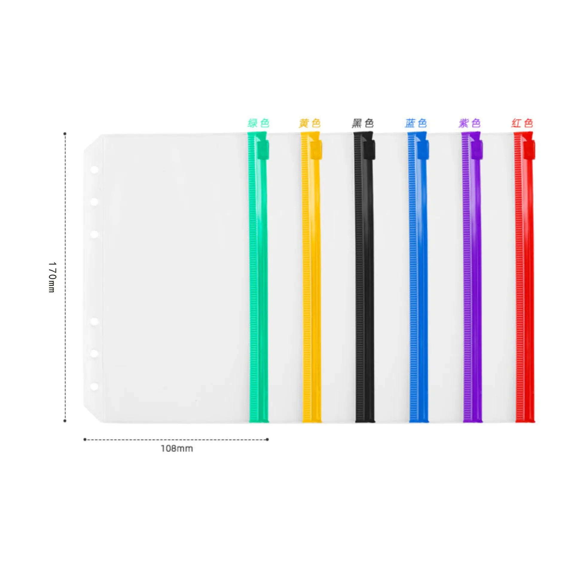 Прозрачные сумки A5 A6 из ПВХ с 6 отверстиями, с красочной сумкой на молнии, аксессуар для ноутбука, дневник, планер, спортивные