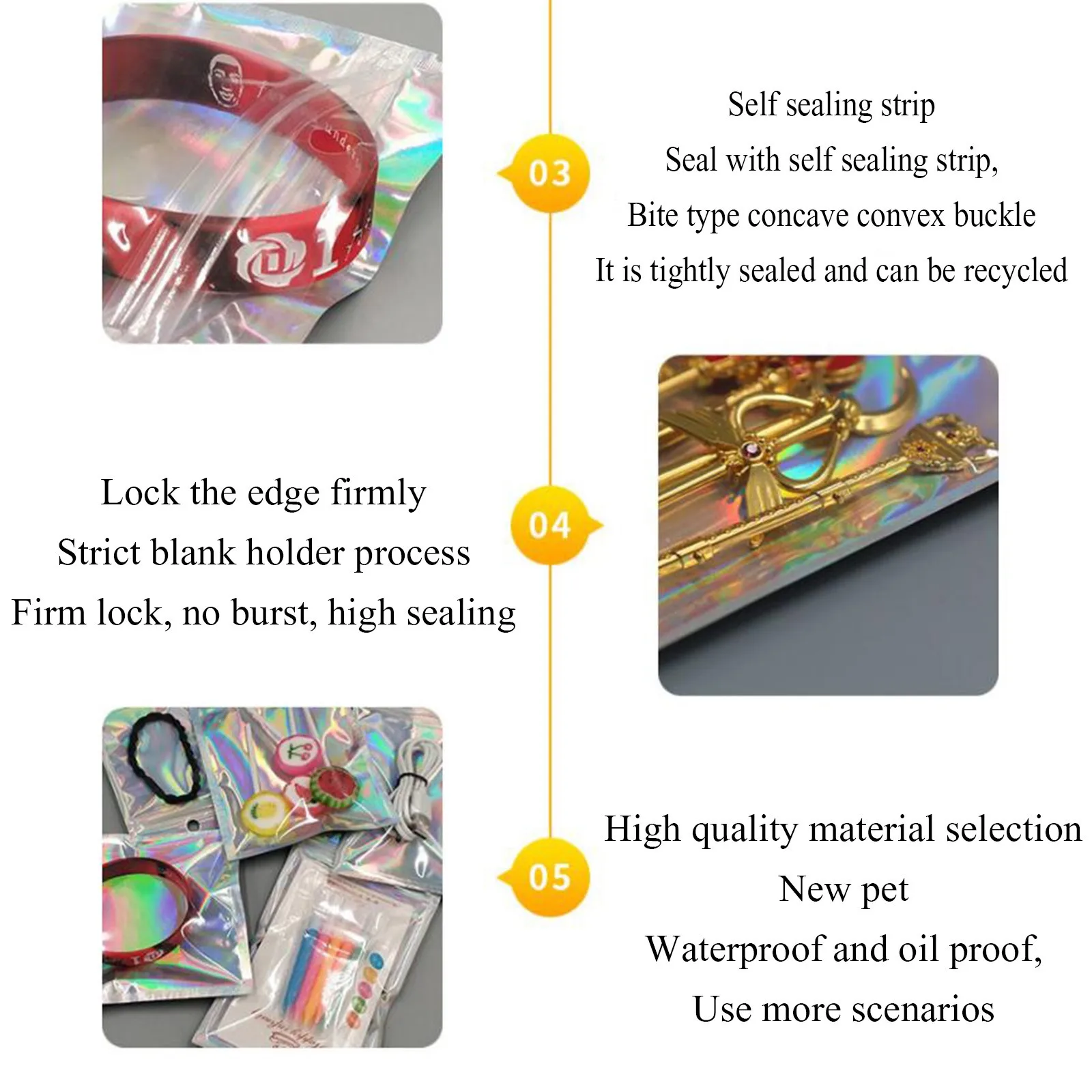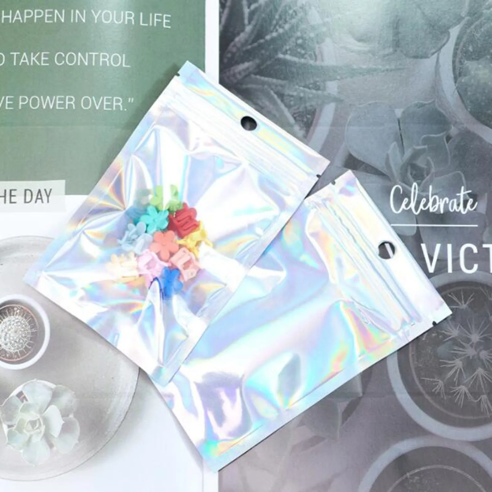 Перерабатываемые и полезные-мешки из майлара эффективно сохраняют предметы в порядке и гигиеничности. Вы также можете переработать при использовании голографических пакетиков с застежкой-молнией. Таким образом мы можем внести свой вклад в природу.